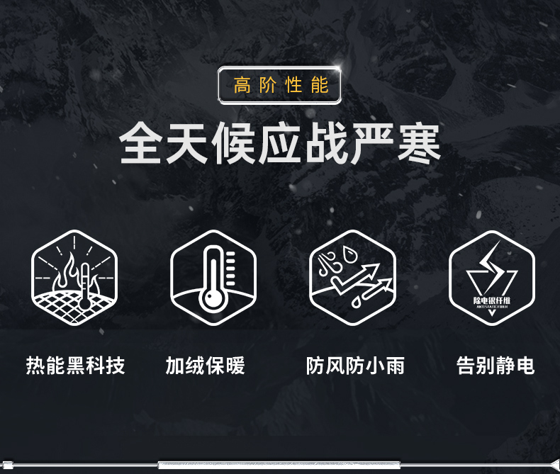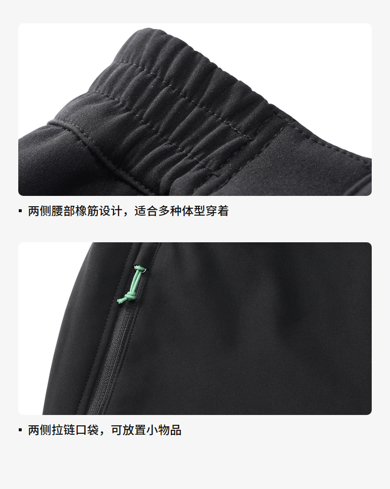 面料经过抗静电处理,整衣还采用除电银纤维车缝,大大避免静电的产生。腰头内贴的防刮面料,穿着更舒适不摩擦;腰头两侧内置橡筋设计,穿着更体贴;YKK品质拉链,带有拉手绳,耐低温防滑户外带手套时开合也很方便。
