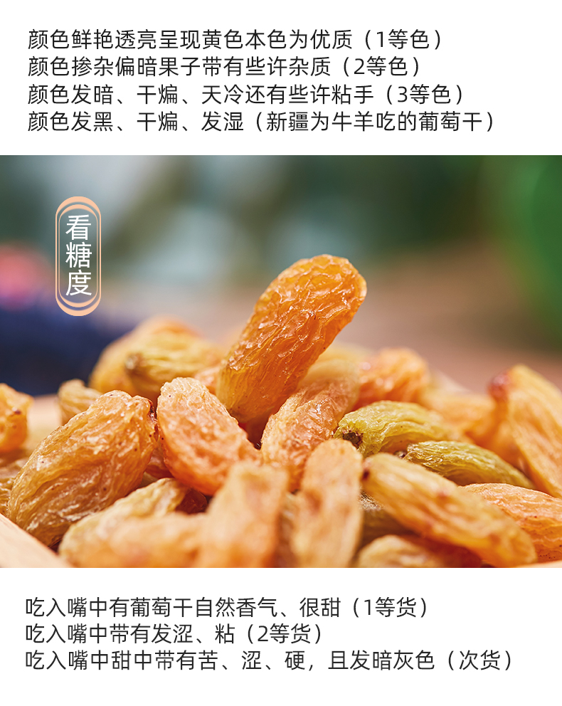 新疆超大颗粒葡萄,果肉饱满有嚼劲,每一口都是实打实的享受,色泽金黄,饱满无沙、口感酸甜,鲜果新鲜晾晒,自然风干,粒大饱满有嚼劲,每一口都是享受