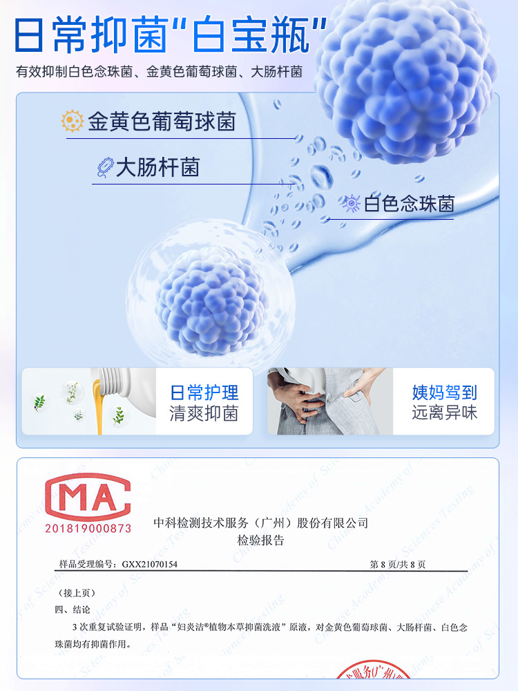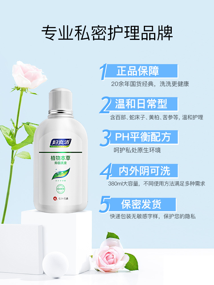 为女性健康,呵护升级,多种中草药,植物抑菌,温和不刺激,护理私处,去异味,洁阴止痒!
