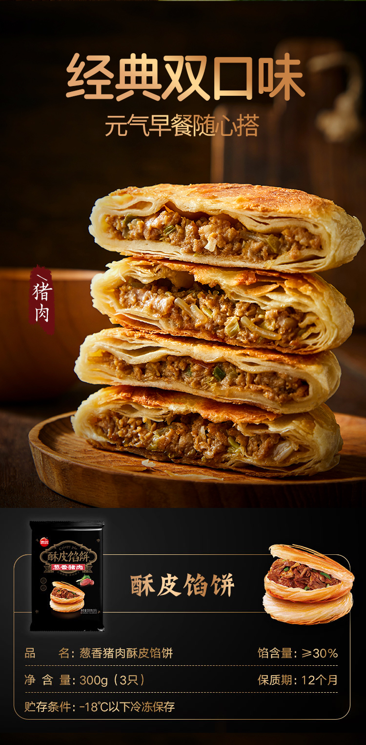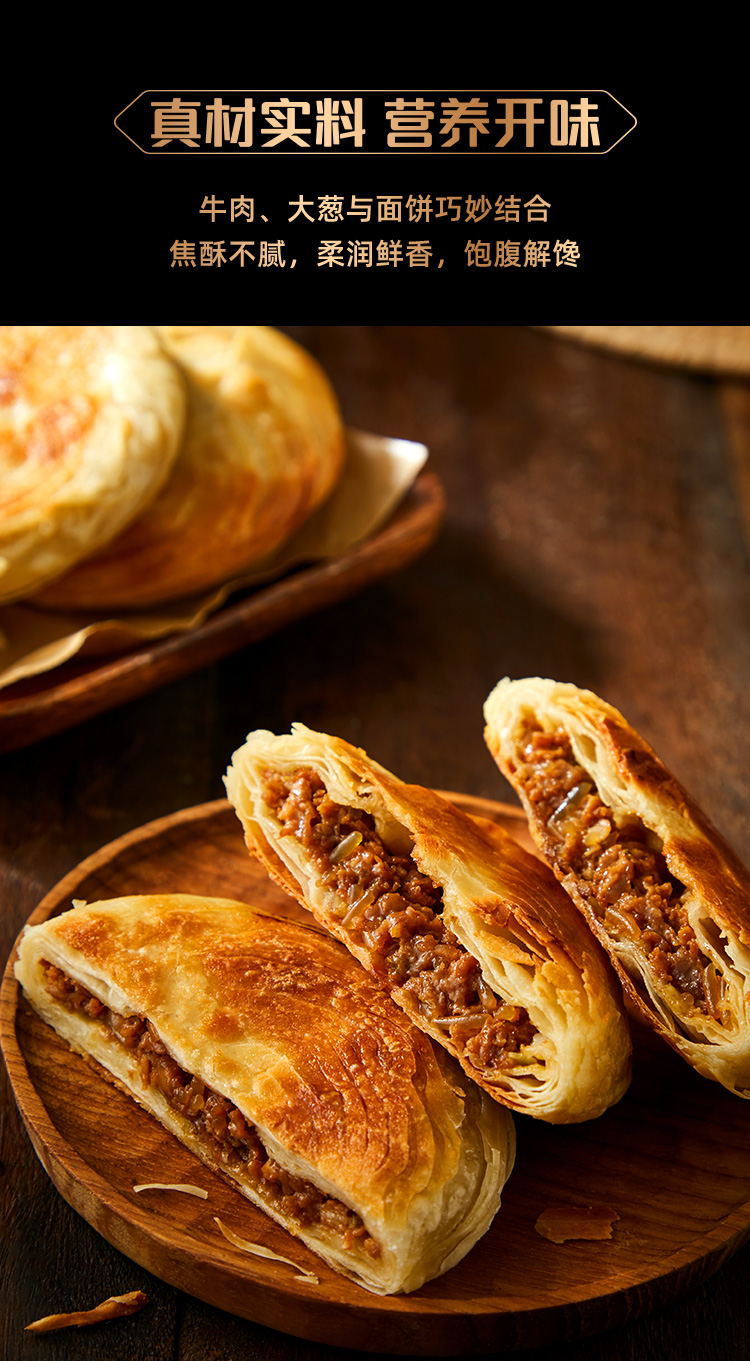 思念食品官方旗舰店出品,甄选优质原料,饼皮盘丝工艺层层起酥,,每咬一口都掉渣!肉馅饱满,口感扎实,馅料保汁工艺,原汁美味,便宜好吃!无需解冻,使用电饼铛或平底锅,简单煎制即可享用。