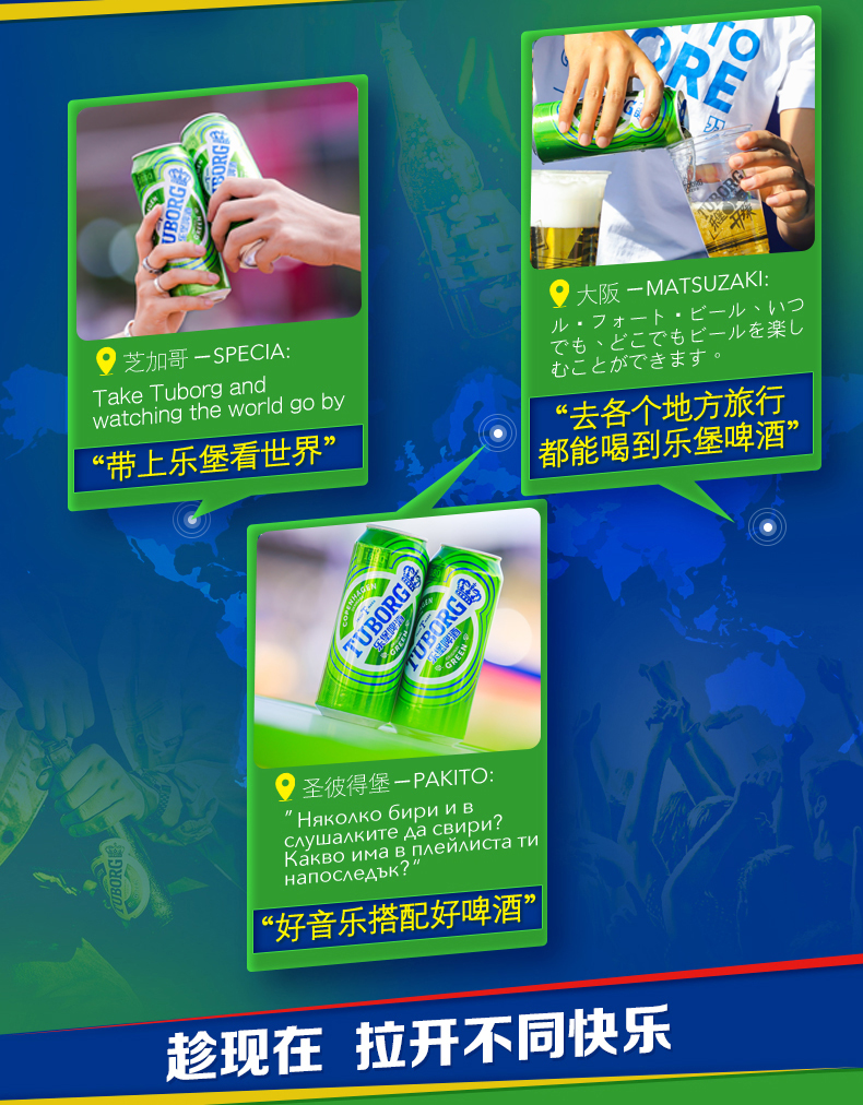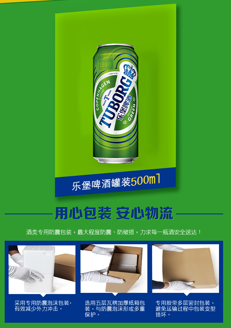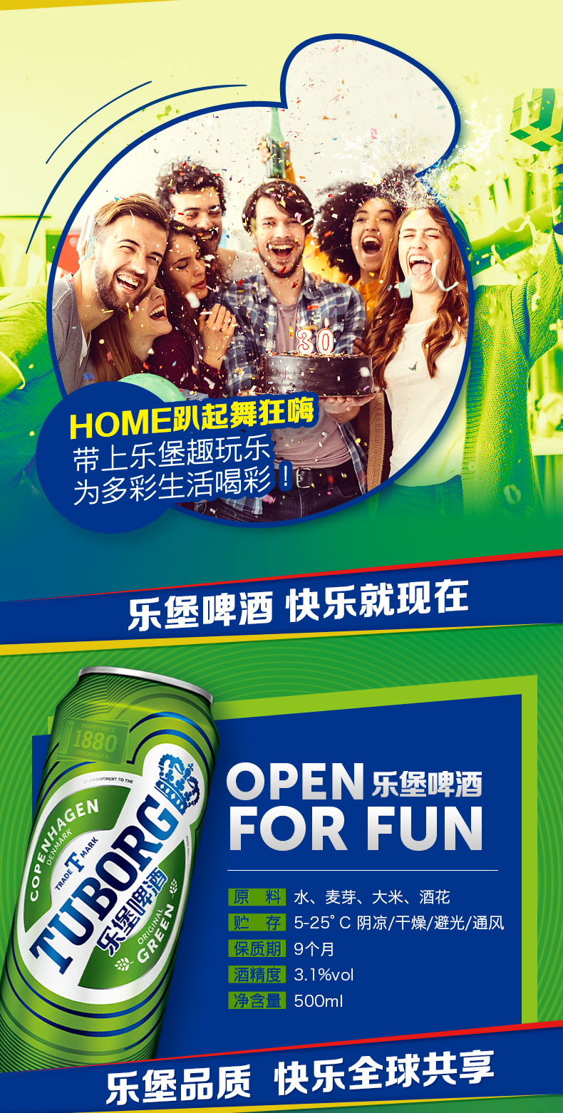 乐堡啤酒(Tuborg)是全球第四大酿酒集团嘉士伯旗下的品牌,始于1873年哥本哈根的乐堡啤酒,是一种底部发酵的淡味型啤酒,采用经过轻微烘焙的淡啤麦芽、苦味啤酒花和底部发酵酵母酿制而成,从而呈现出深受人们喜爱的清爽顺口的口感,并散发着鲜花与谷物的芳香。这款苦度淡雅适中的啤酒,非常适合搭配日常简餐如沙拉,同时与辛辣的亚洲美食也可谓相得益彰。