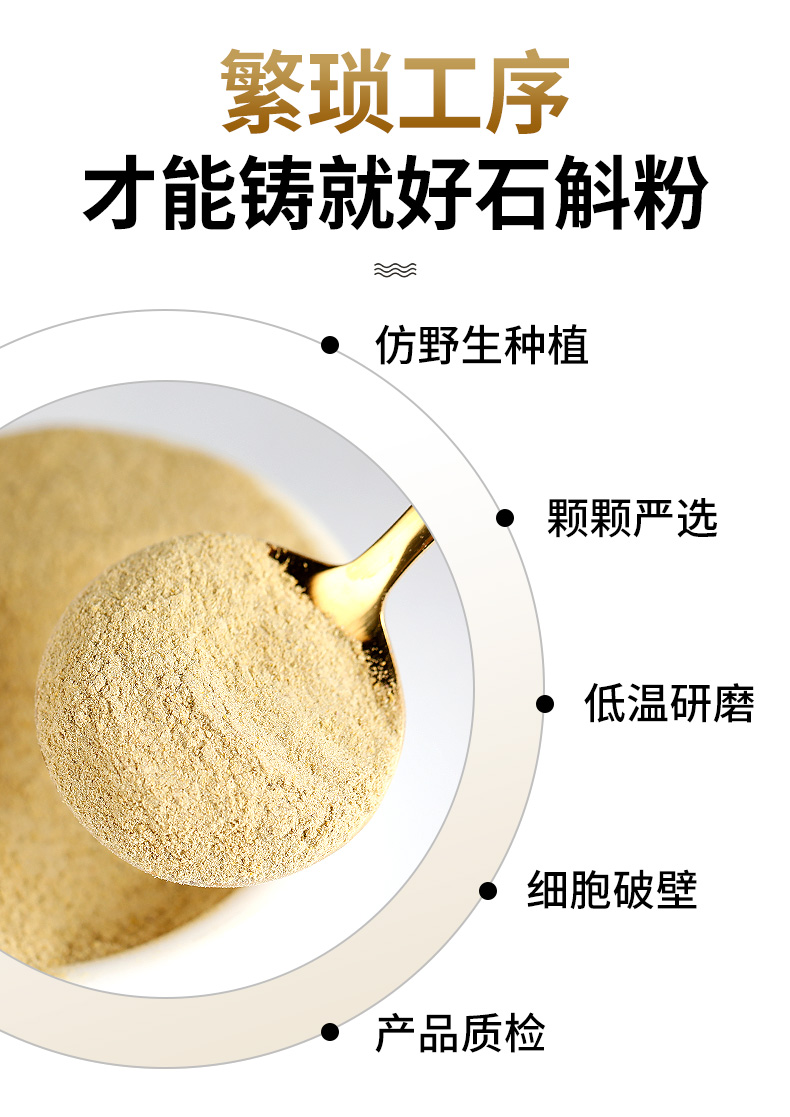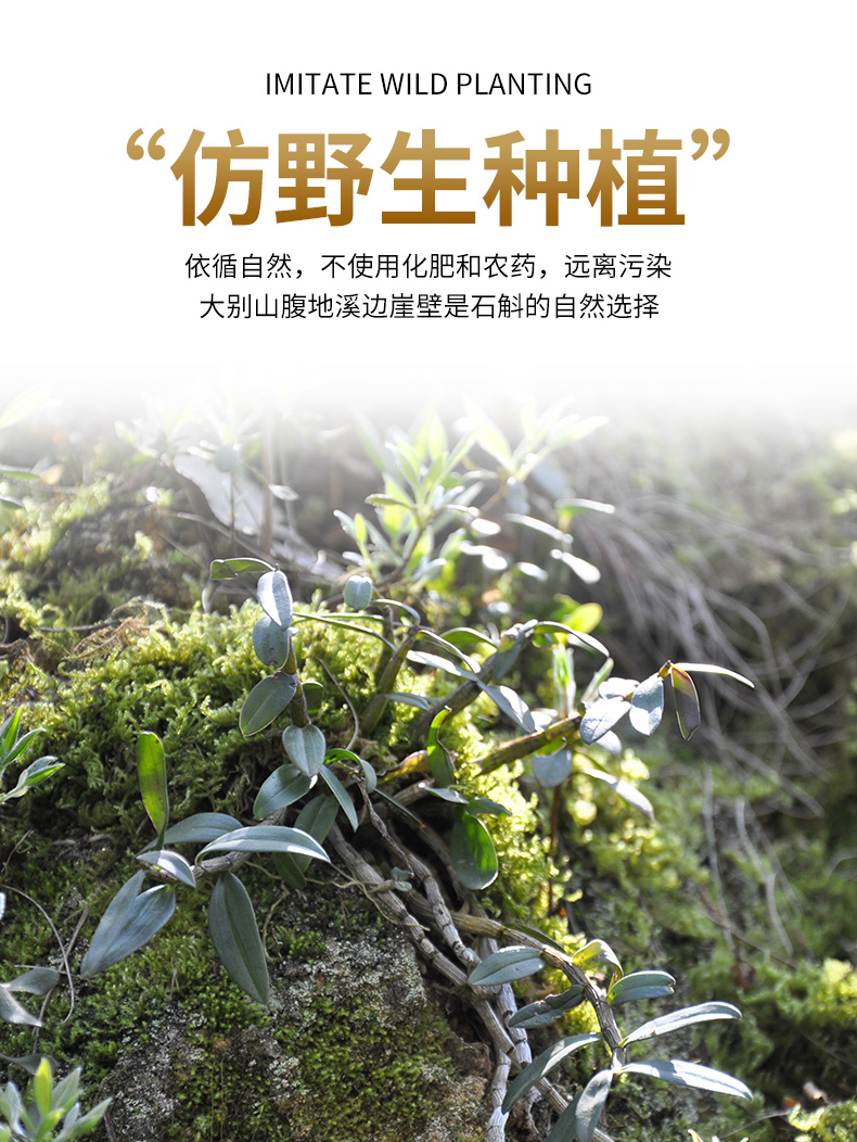 霍山铁皮石斛,大别山腹地仿野生种苗种植,依循自然,不使用化肥和农药,远离污染,严选5年顶芽2-6段,精研破壁,粉质细腻易吸收,多糖丰富胶质浓稠,口感纯正。