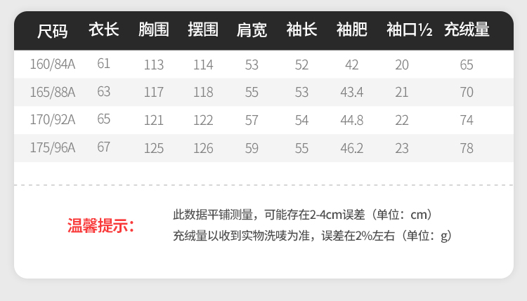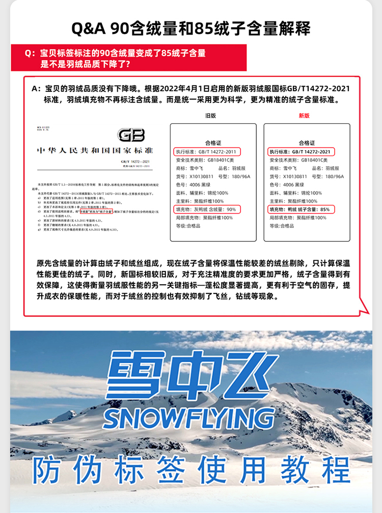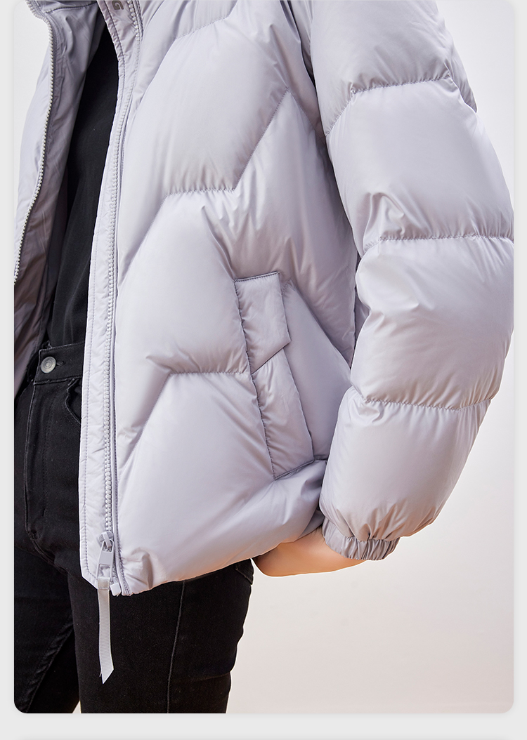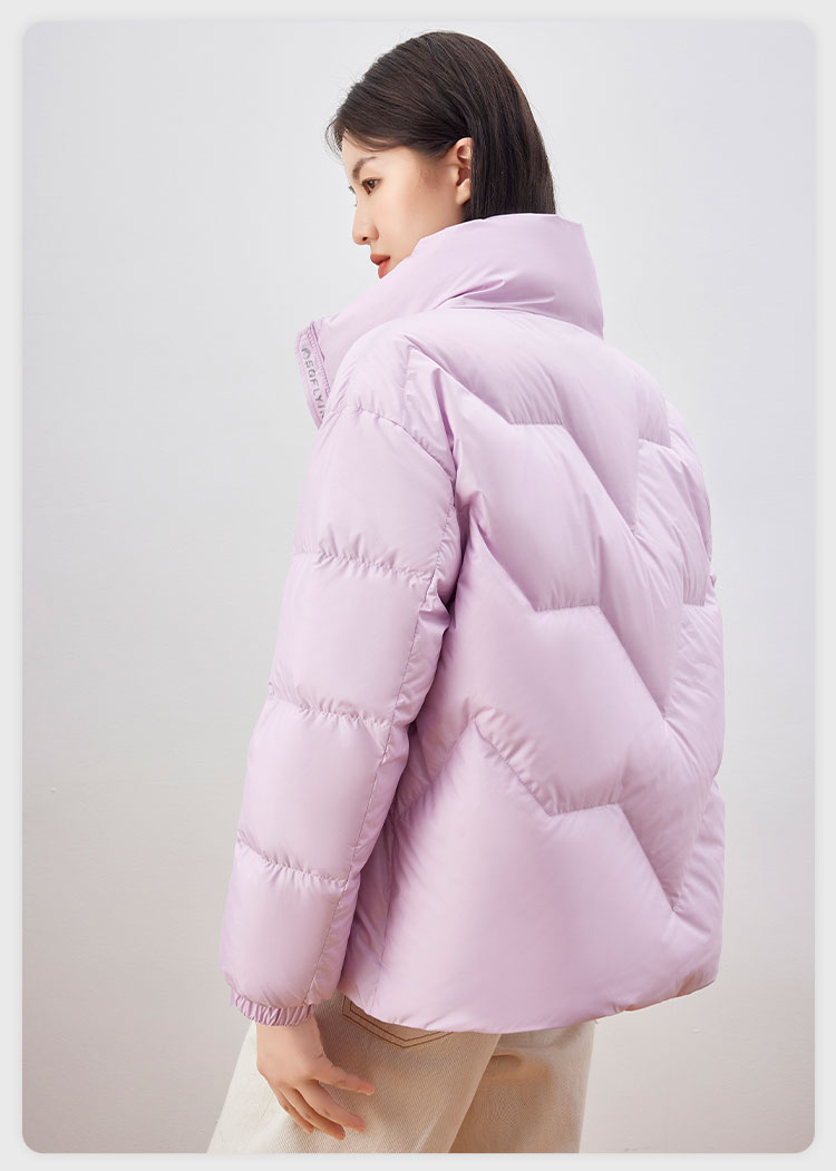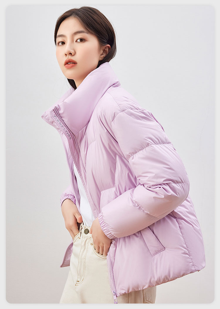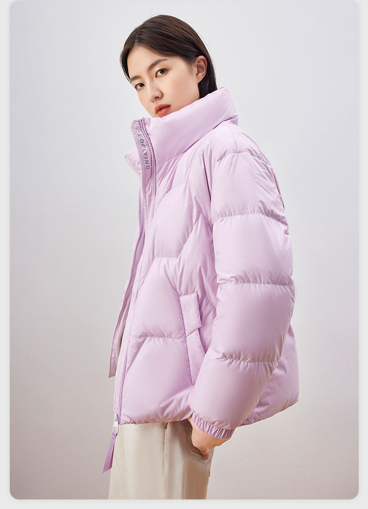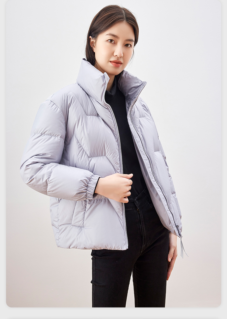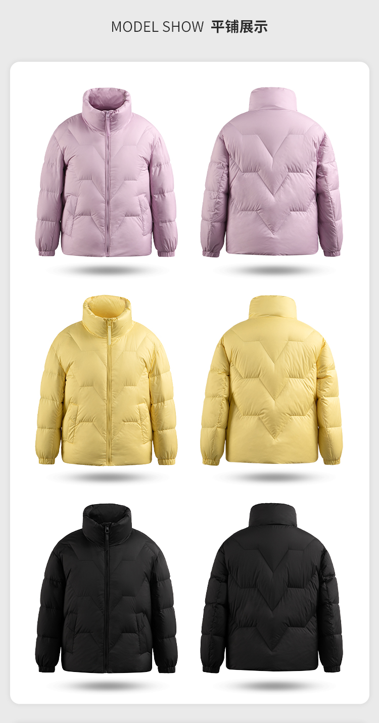 雪中飞 时尚保暖鹅绒服,填充大绒朵优质鹅绒,绒子含量80%,充绒量65-78g,蓬松保暖上身不臃肿,双层高密里料,分格填充,充绒均匀、不跑绒,外层面料100%聚酯纤维,高支高密,防风防泼水,短款H版型立领设计,适合多种身材,穿着时尚百搭。