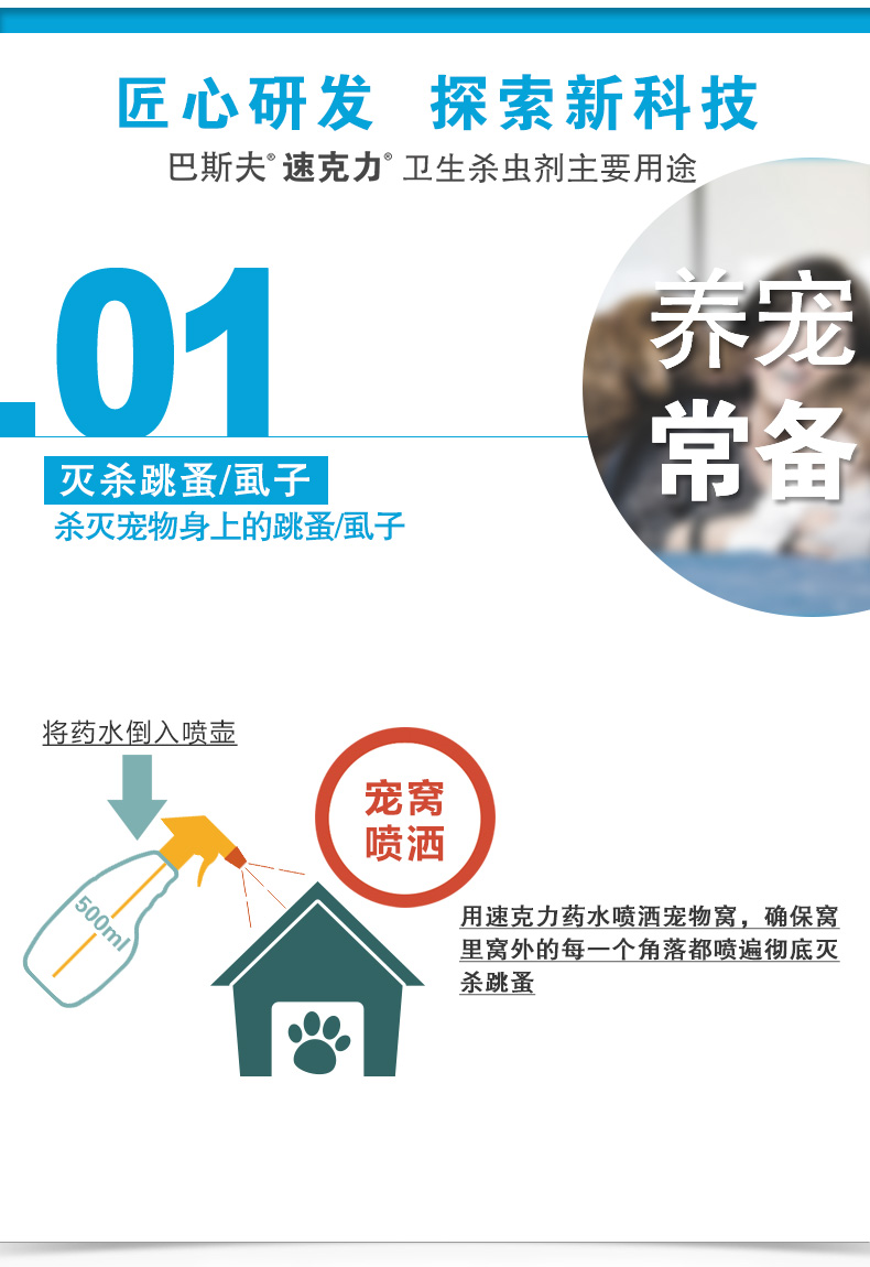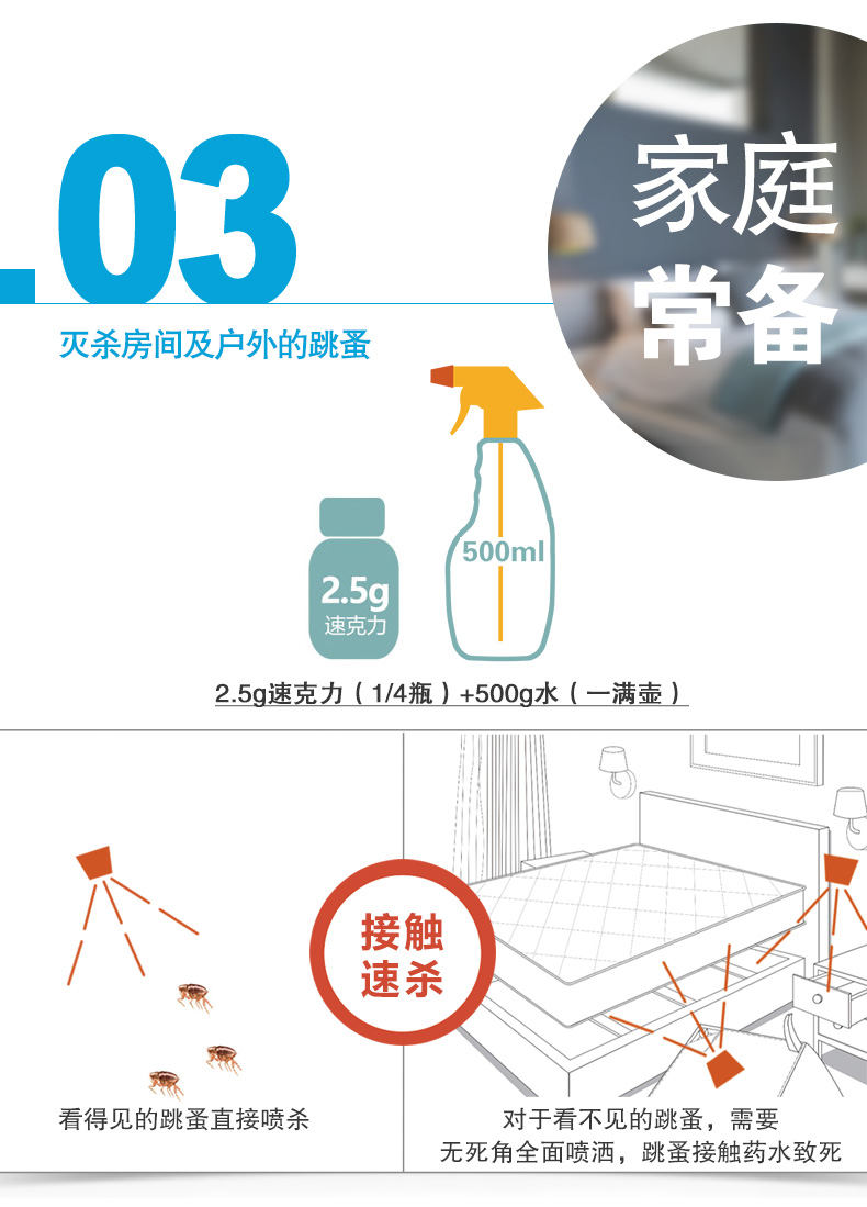 德国巴斯夫出品的速克力,主要成分是呋虫胺,对于拜尔吡虫啉杀灭不了的跳蚤和蟑螂有非常好的灭杀效果,杀灭率几乎为100%,而且是触杀型,一次喷药,至少可以保持7天药效,同时对狗和人没有伤害,是最好用的蟑螂跳蚤药之一,家里有烦人小虫的可以试试这款速克力。