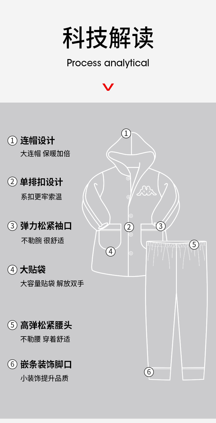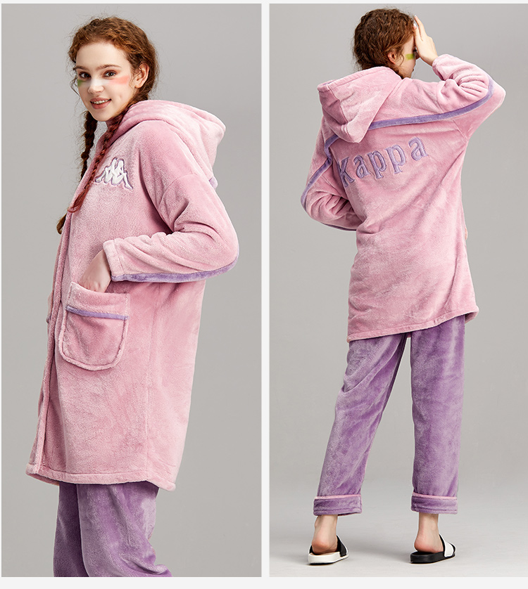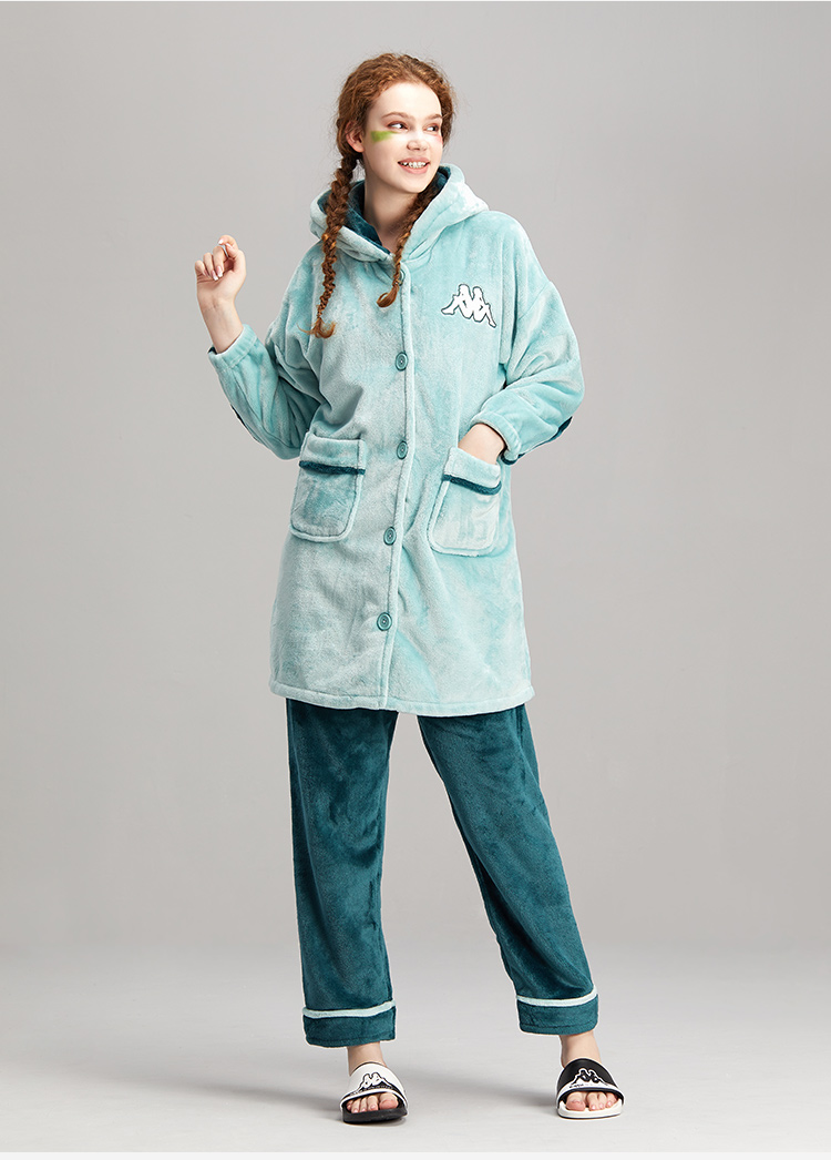 这款Kappa 双面绒时尚家居服,保暖性非常好,整体厚实有质感,绒毛平整有光泽,云般柔软触感,上身透气舒适,充分隔绝外来寒气,简约自然风,居家,外穿超有范儿。