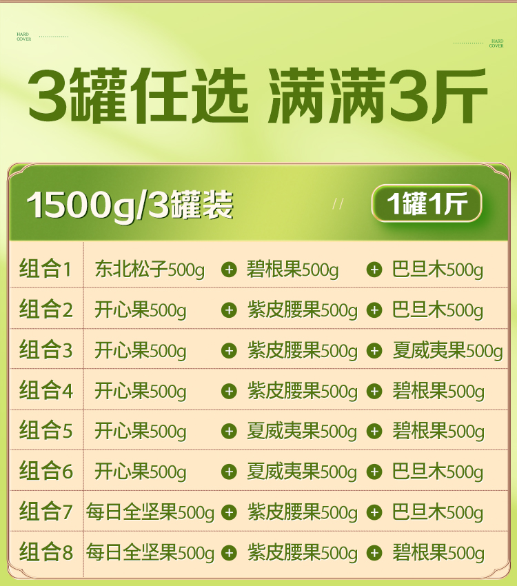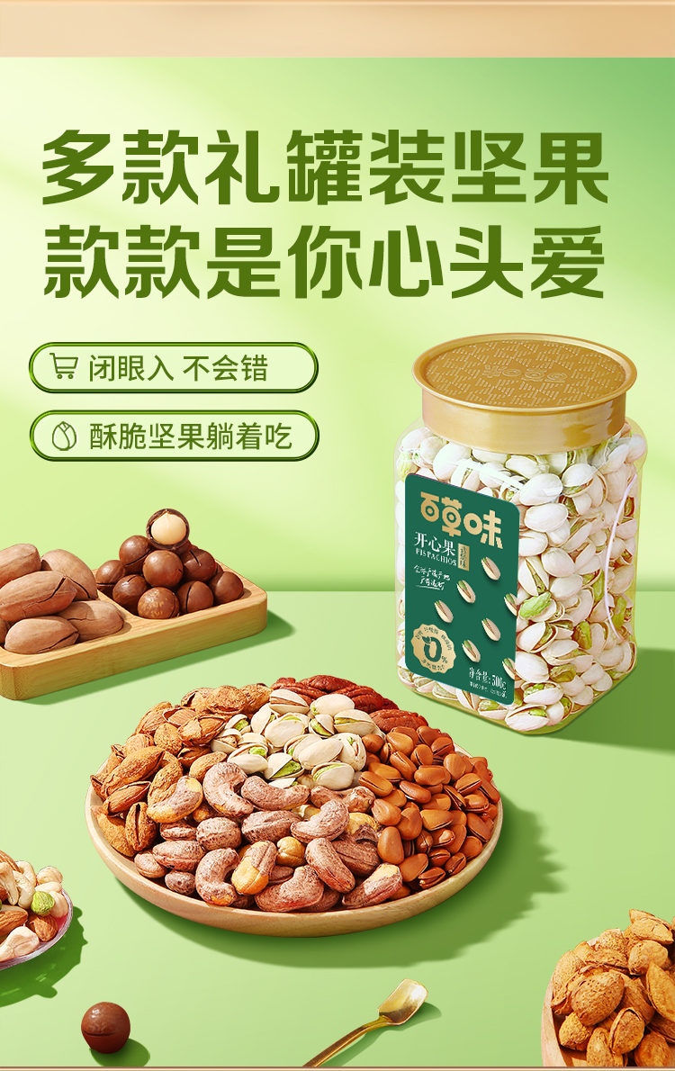 百草味500g*3罐 装坚果组合。夏威夷果、开心果、松子、腰果、,精品大满罐,品质好坚果,多款礼罐装坚果,款款是你心头爱
