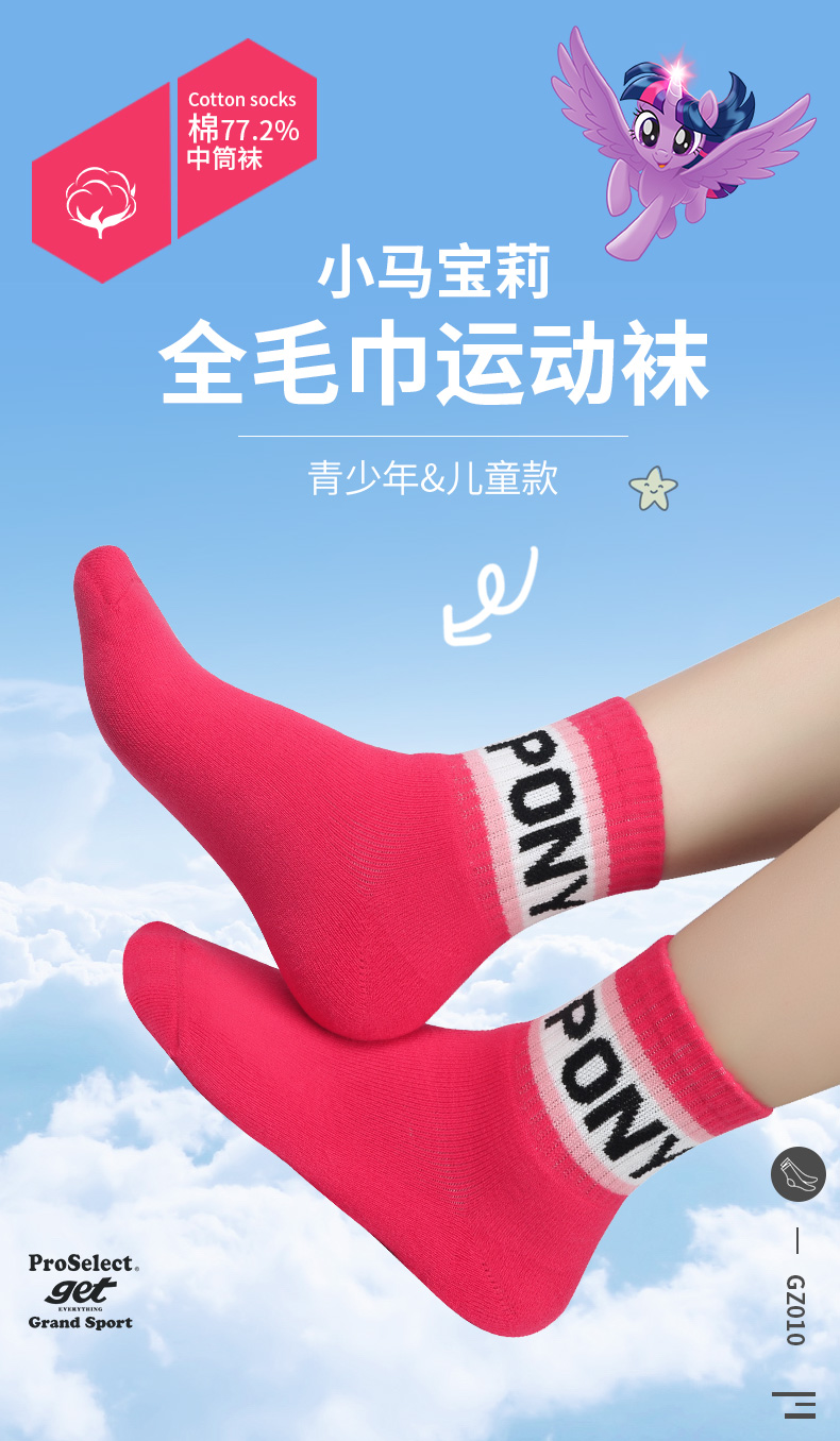 天猫小马宝莉弘润元吉专卖9.9元,拍5件可领25元优惠券,拍5件实付24.5元到手5双;均码设计,儿童款为33-38码可穿,青少年款为37-42码可穿。专柜同款,线下一双9.9元,专为儿童青少年设计!精选优质全毛巾底,吸湿排汗,柔软舒适,运动缓震,不臭脚,立体中空编织,舒适透气,不勒脚。