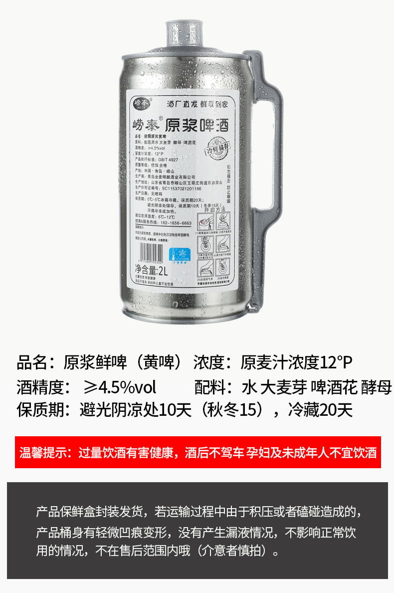产地青岛 酒厂直发。青岛特产全麦精酿,原麦汁浓度12°P,新鲜灌装,全麦精酿,浑浊醇厚。黄啤此价,另有白啤可选,