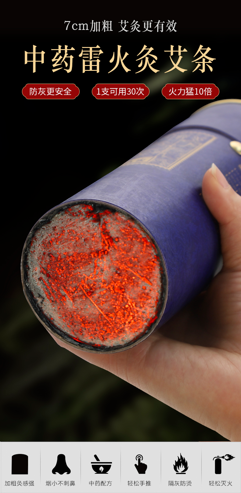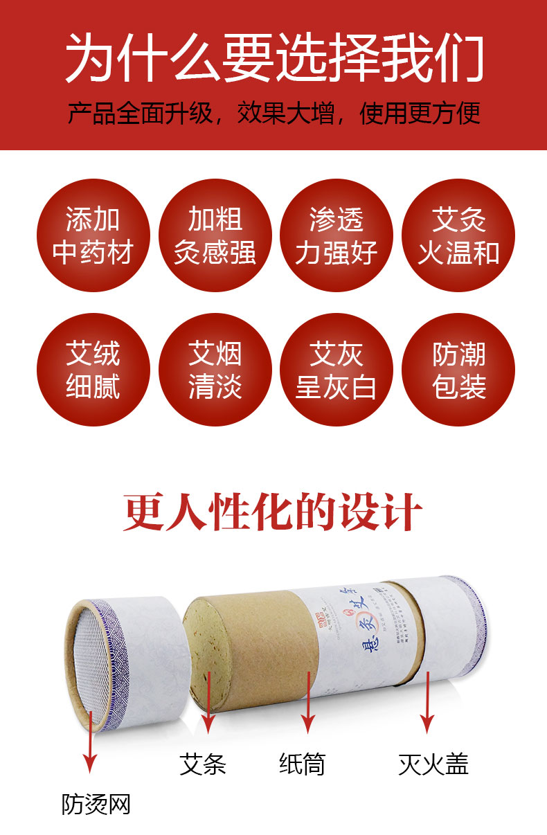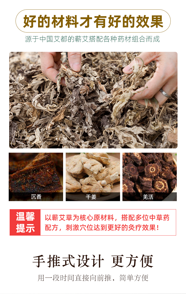 5cm粗此价,采用正宗国家地理标志产品「蕲艾」为核心原料搭配多种中草药,艾绒金黄细腻无杂质,火力温和燃烧持久,帮助祛湿散寒,通经活络,缓解疲劳,男女老少养生必备!