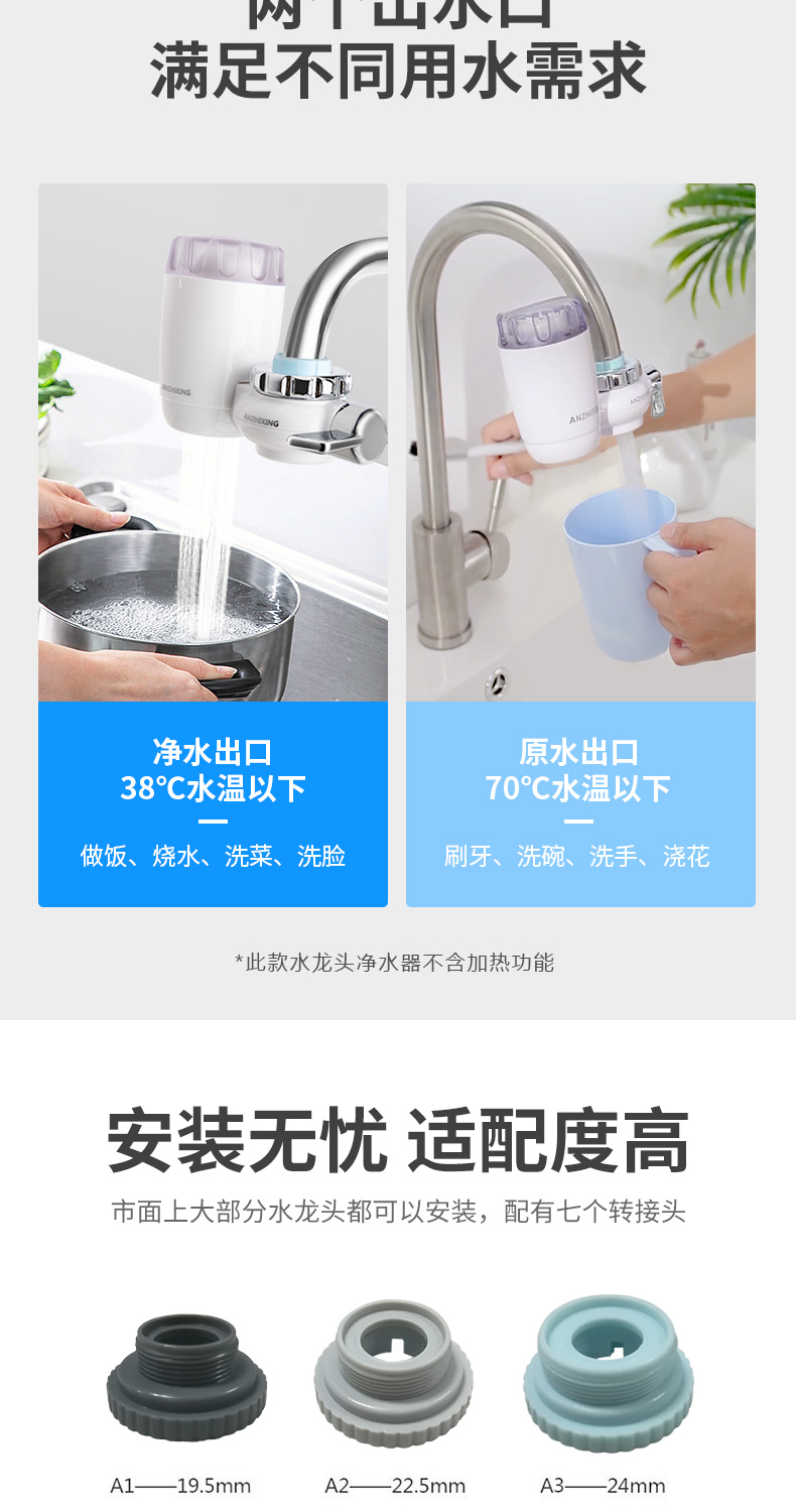 第2款套餐一机五芯,送多种转接头,适配市面上95%水龙头。安之星是国家高新技术企业,专注于水处理领域,是国内前10的净水品牌。