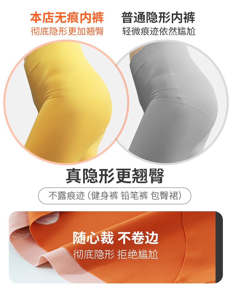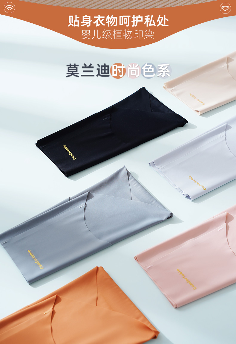 女士中腰内裤,采用80支超细冰丝面料,成分75%锦纶+25%氨纶,面料如婴儿肌肤般细腻柔软,速干透气,高弹耐拉扯,贴合肌肤舒适不勒,一片式无痕设计,隐形穿搭不露痕迹。内档是100%纯棉,达到AAA级抑菌,穿着舒适更放心。