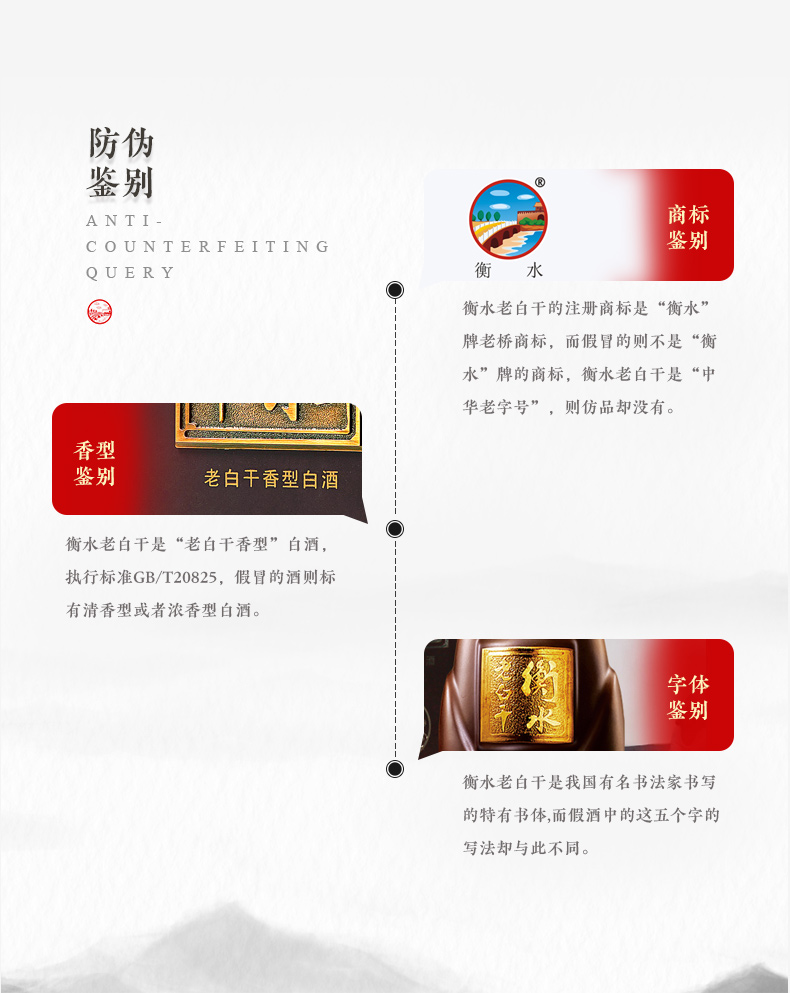 衡水老白干传承千年,口感甘洌清雅。其酿酒工艺,入选国家级非物质文化遗产,地缸发酵,隔绝杂质,杂醇油含量低,饮后不上头。2008年,传统酿造技艺被评选为“国家级非物质文化遗产”,1915年巴拿马万国博览会甲等金奖。2018年拉斯维加斯烈性酒大赛双金奖。