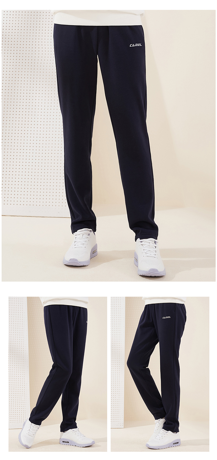 细节上:松紧腰设计、内置抽绳,美观大方。脚口有休闲直筒版型、运动束口2种款式可选。