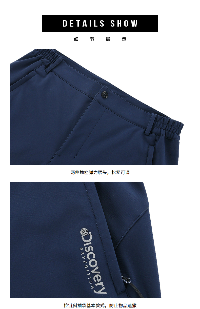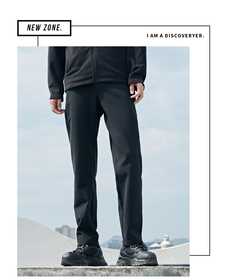 Discovery这条裤子,面料是75%的聚酯纤维,混25%的氨纶弹力纤维,一般软壳裤的弹力范围在8%-12%之间,这个混入25%氨纶,弹性超强。裤子厚度在中等水平,单层双面,外面梭织,具有防风功能,强度也可以。里面抓绒,保暖效果比纯梭织要好,并且因为是单层结构,穿脱也挺方便。