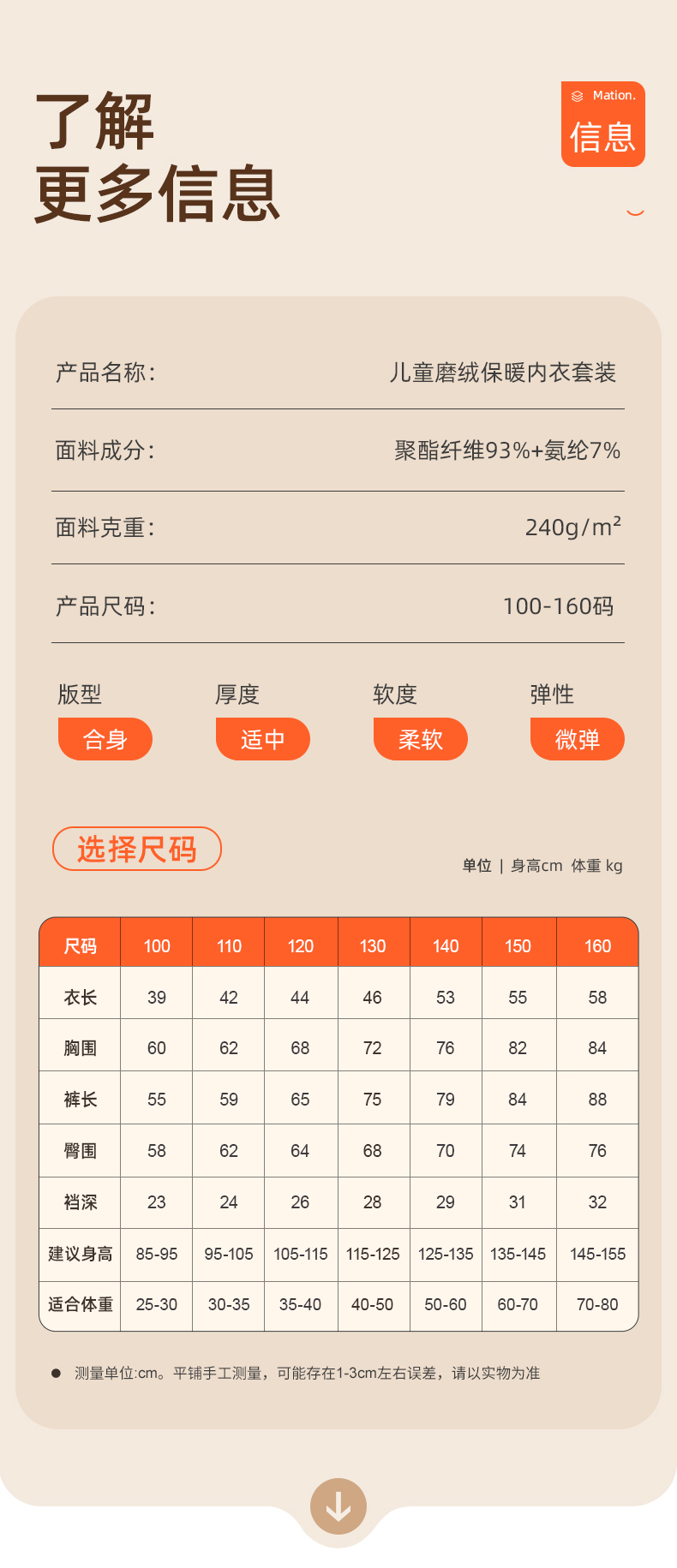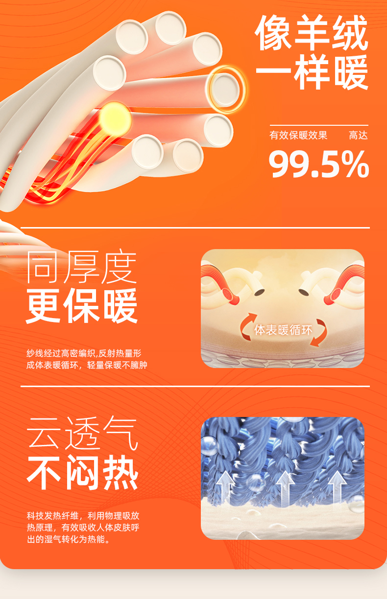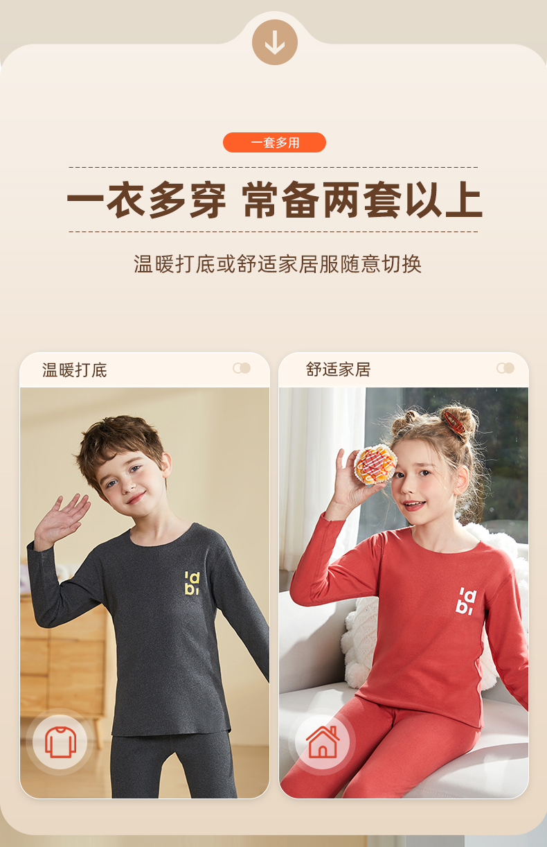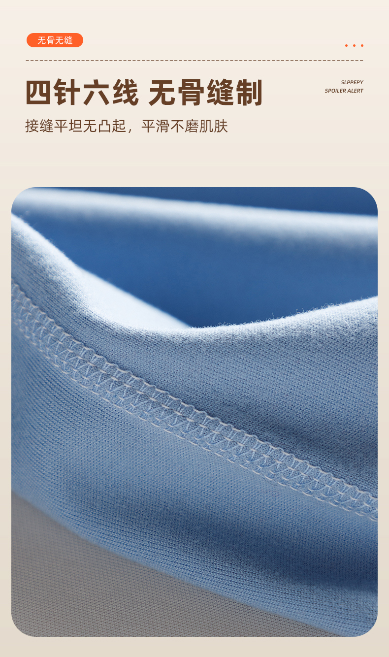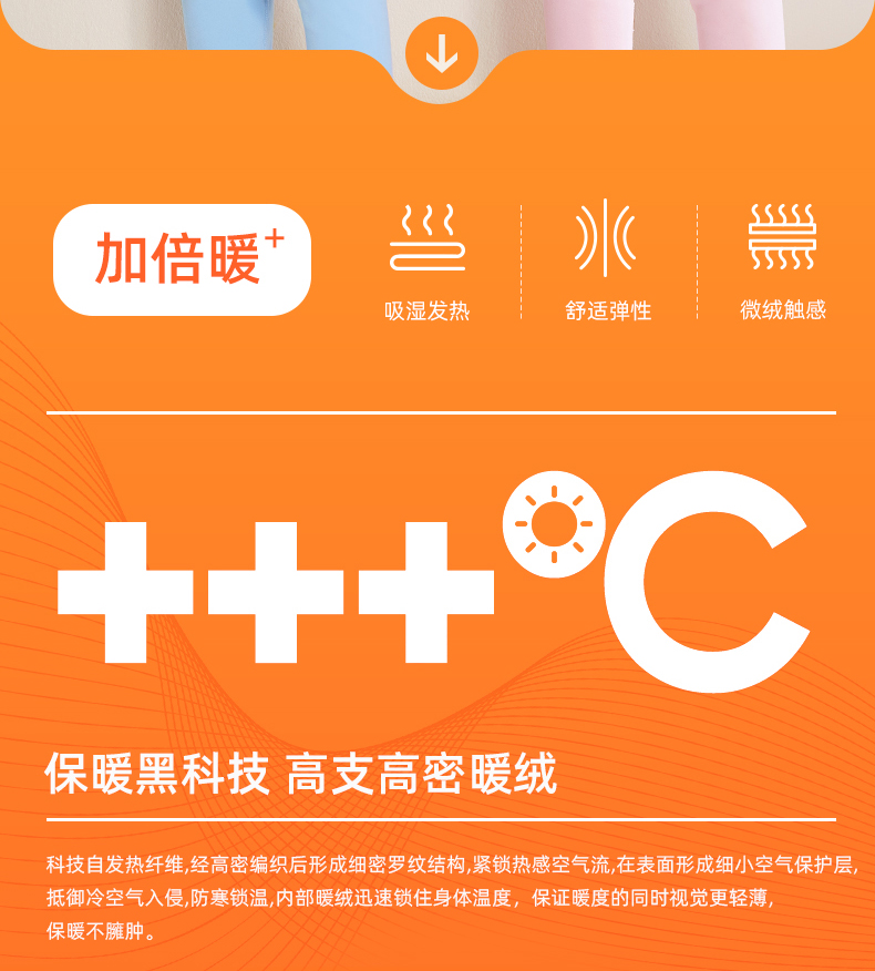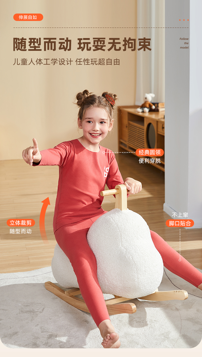 这款秋衣套装,面料成分为93%聚酯、混入7%的氨纶增加弹力,面料四面高弹,穿着贴身不易变形,双面磨绒,亲肤柔软,有优良的吸湿透气性,采用四针六线无骨缝纫,过度平滑,不磨皮肤,穿着更舒适,领口、袖口、脚口采用无痕工艺,可随意裁剪,秋冬保暖,打底无痕。