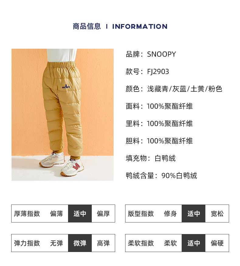 天猫史努比童装旗舰店149.9元,可领80元优惠券,实付69.9元到手;这款史努比 儿童羽绒裤,高品质高密度面料,防风防水,柔软顺滑;90%白鸭绒填充,舒适保暖;松紧裤腰,富有弹力;萌趣印花,可爱点缀;罗纹束口,舒适方便。