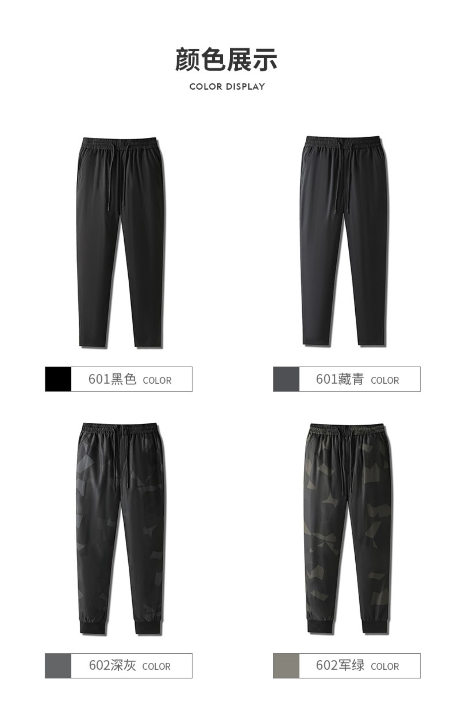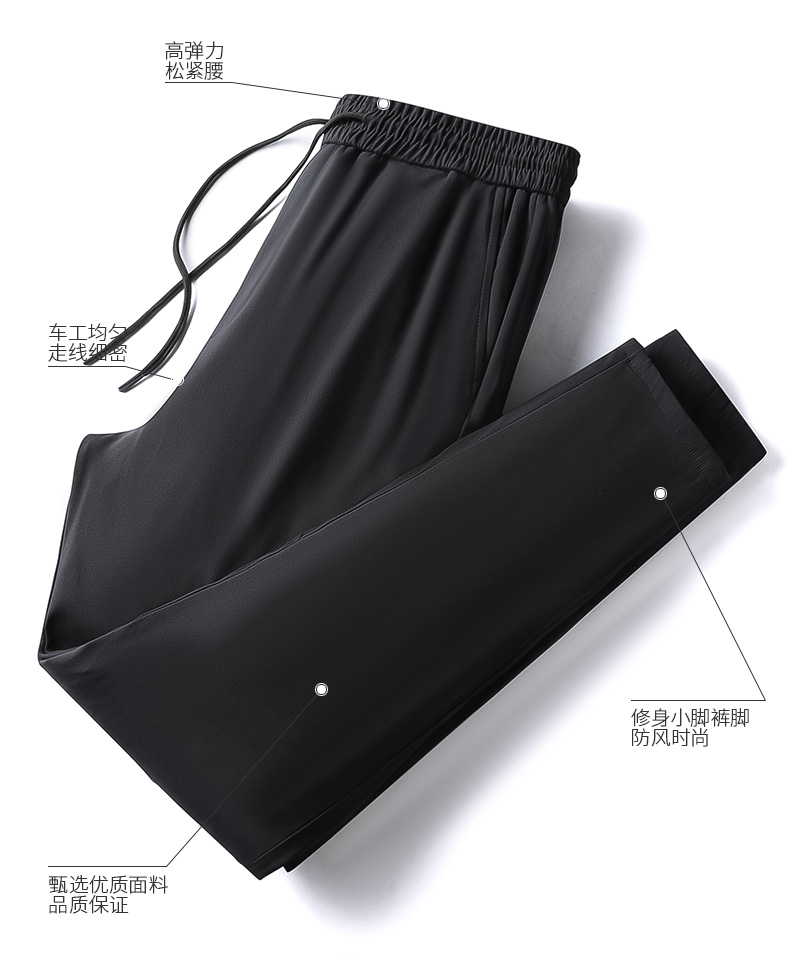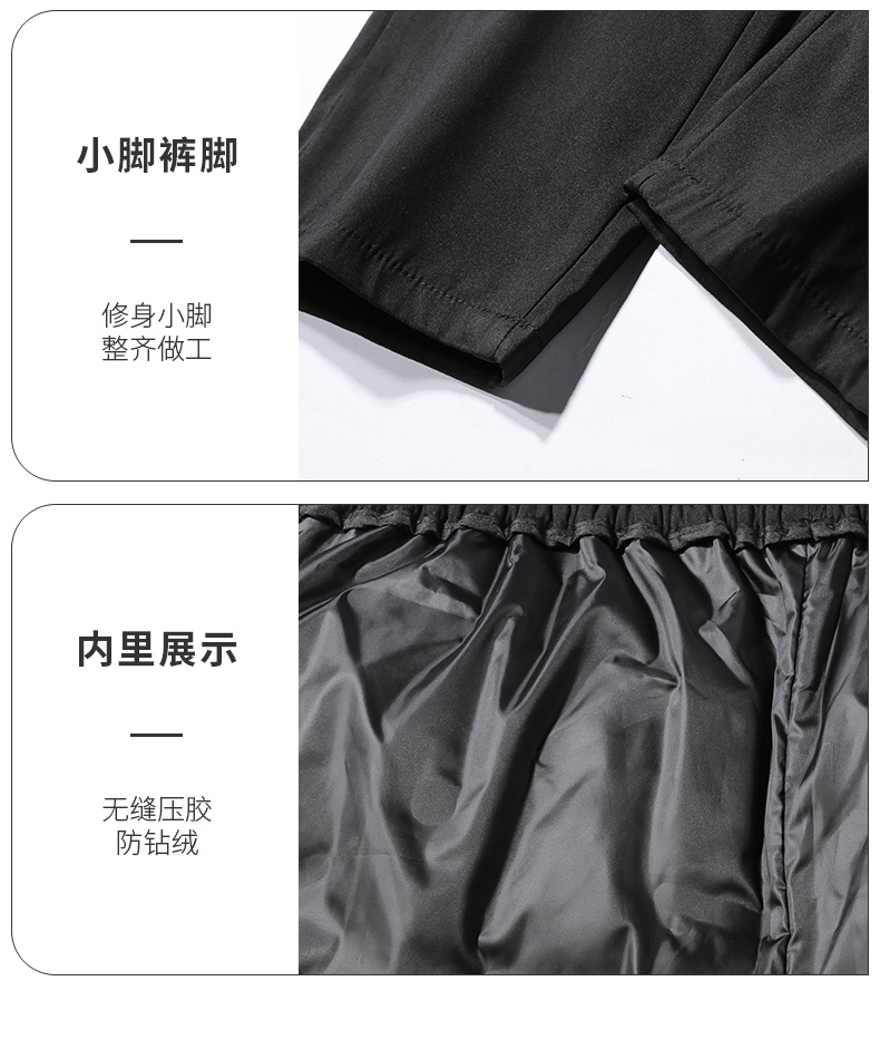 3D立体环绕裁剪运动版型,腰部松紧设计,配有抽绳,穿脱方便,舒适不勒,裤脚收紧,贴合脚踝,锁温防钻风。