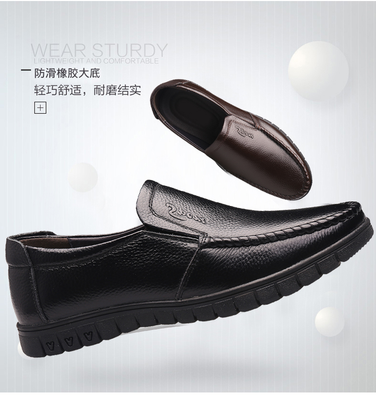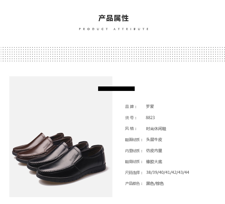 这款罗蒙皮鞋,鞋面与鞋面内里均采用头层牛皮材质,鞋垫采用二层猪皮材质,真皮透气舒适;橡胶防滑大底,轻巧舒适,结实耐磨。外表为精美荔枝纹,美观不易脏;日常休闲,或商务场合,都适合穿。