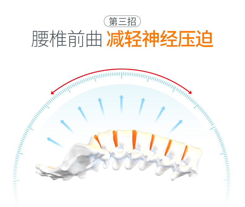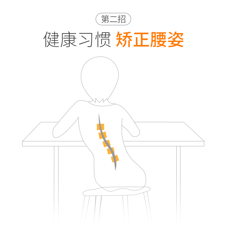 采用一锁二推三支撑方法,先是360°环抱锁定腰椎,弹力绑带设计,避免腰肌劳损,其次铝板固定,根据腰部自身生理曲线弧度定型,最后反C支撑,撑起腰椎,修复矫姿。内置的理疗磁石可以作用腰部穴位,减轻腰部不适。
