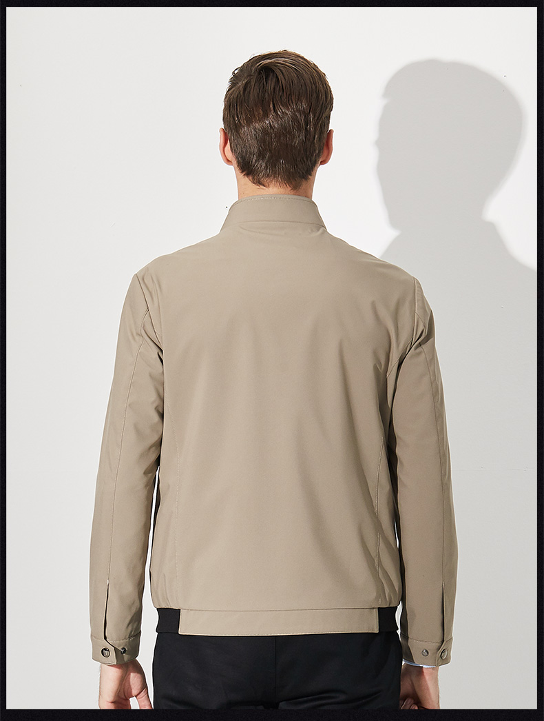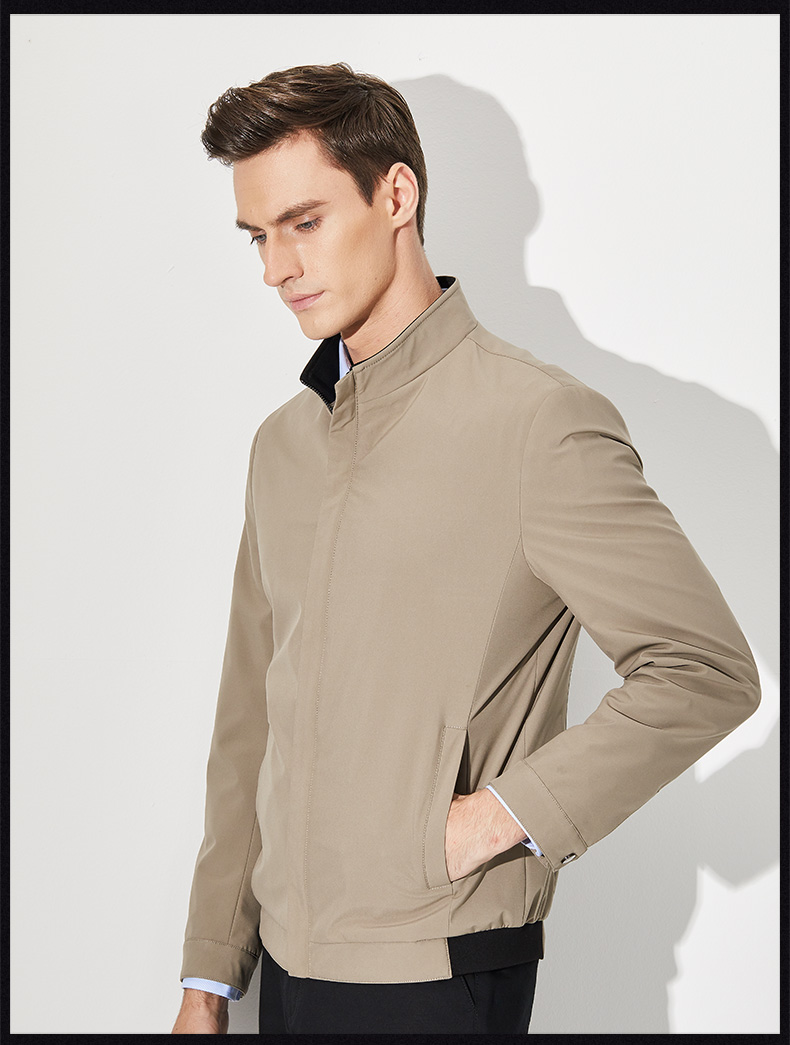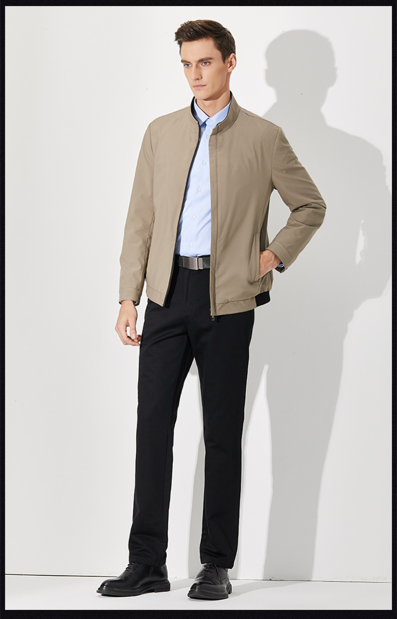 与其他棒球领夹克不同,这款采用立领款式,版型更板正利落,有通常所说的“干部装”风范,沉稳大气,无论日常休闲,还是商务场合,都适合穿。