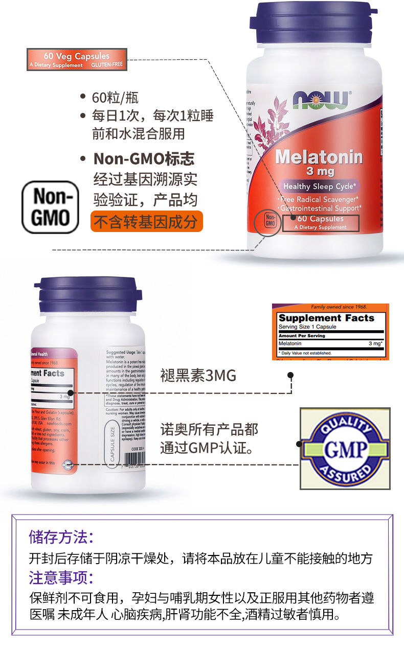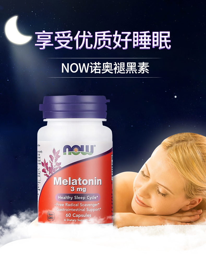 诺奥褪黑素胶囊不含大豆、鱼类、麸质等过敏源,每一粒胶囊含褪黑素3mg,可以改善内分泌系统的功能,提高免疫力,抗氧化,改善睡眠,减缓人体老化速度。