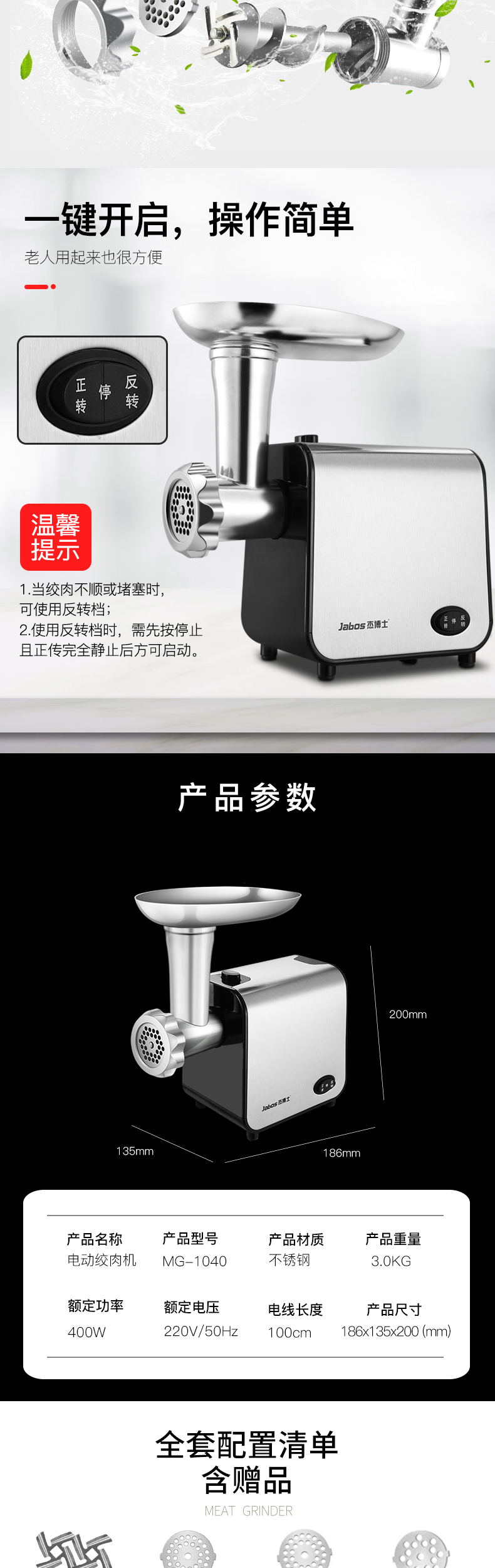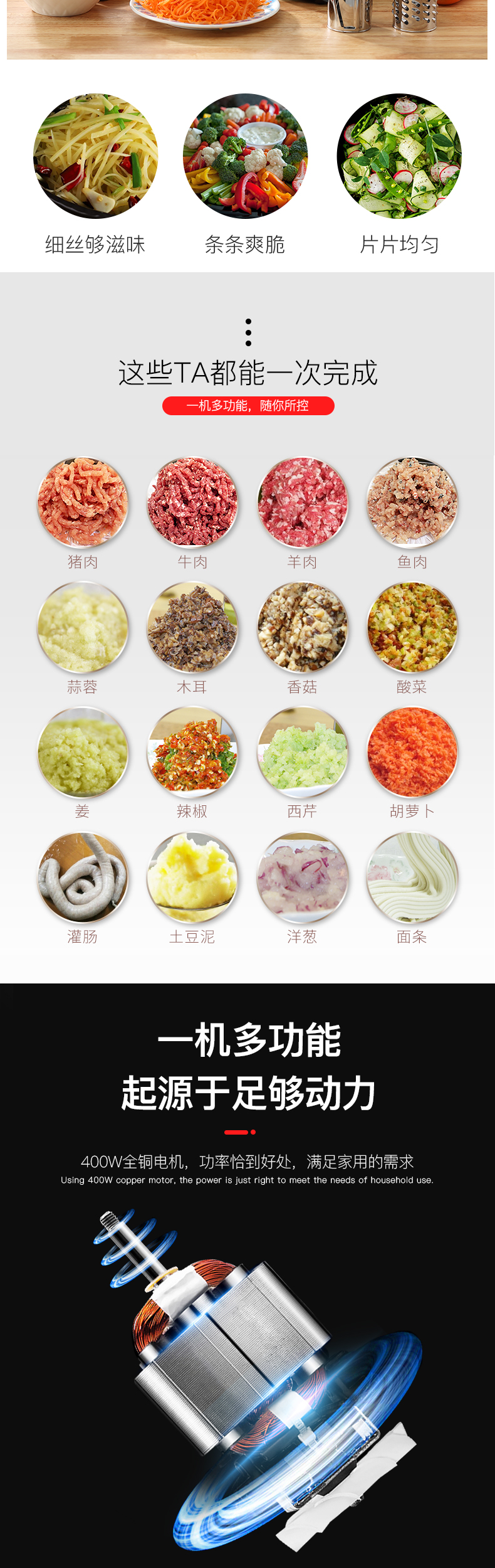 多功能的绞肉料理机,可以处理很多不同的食材: