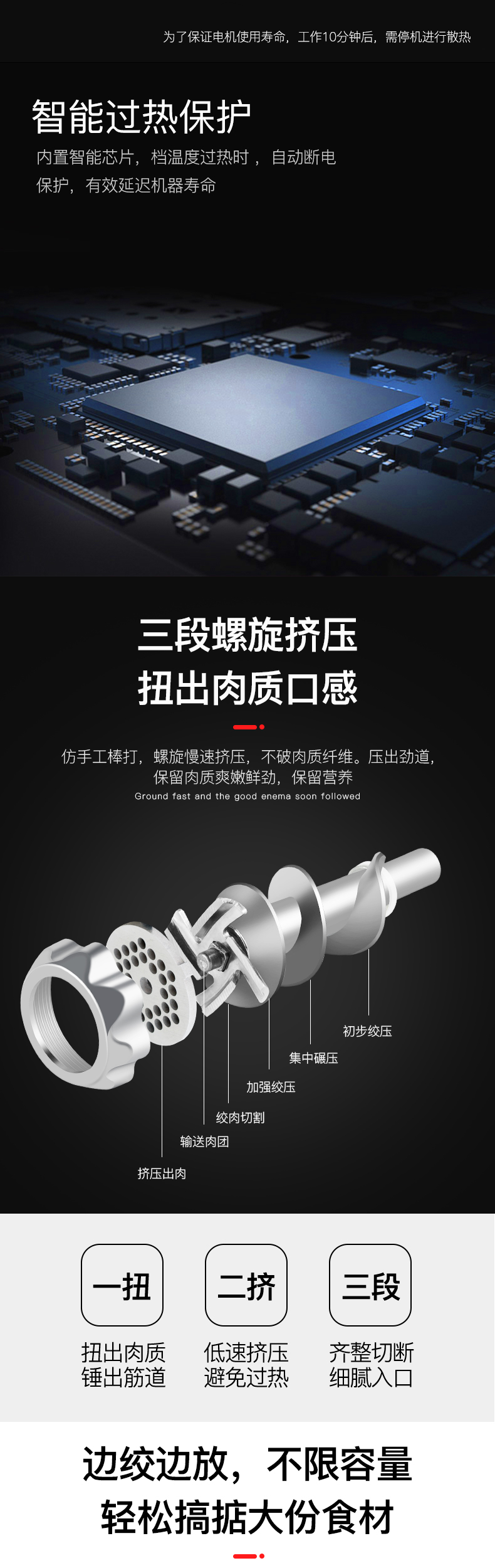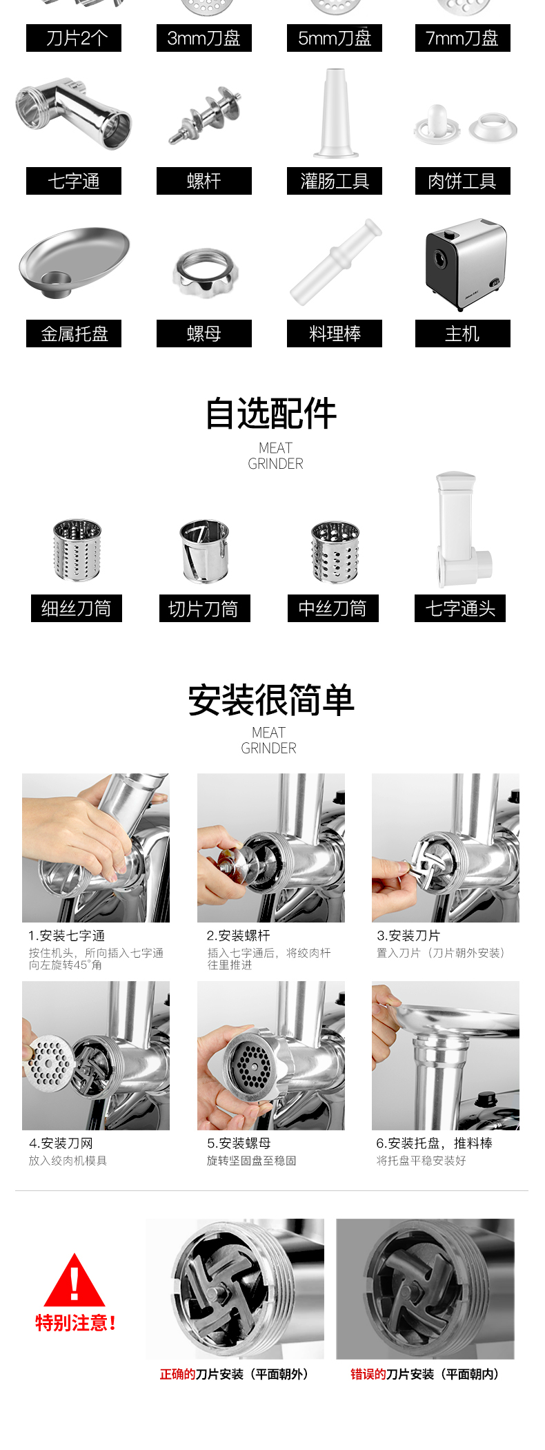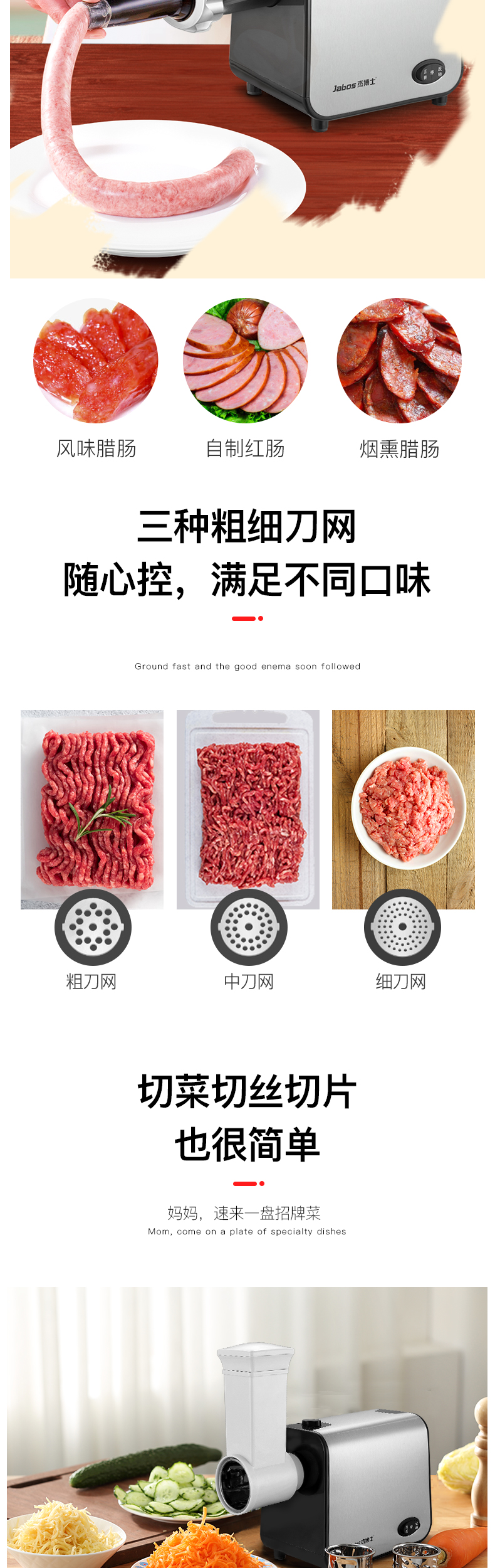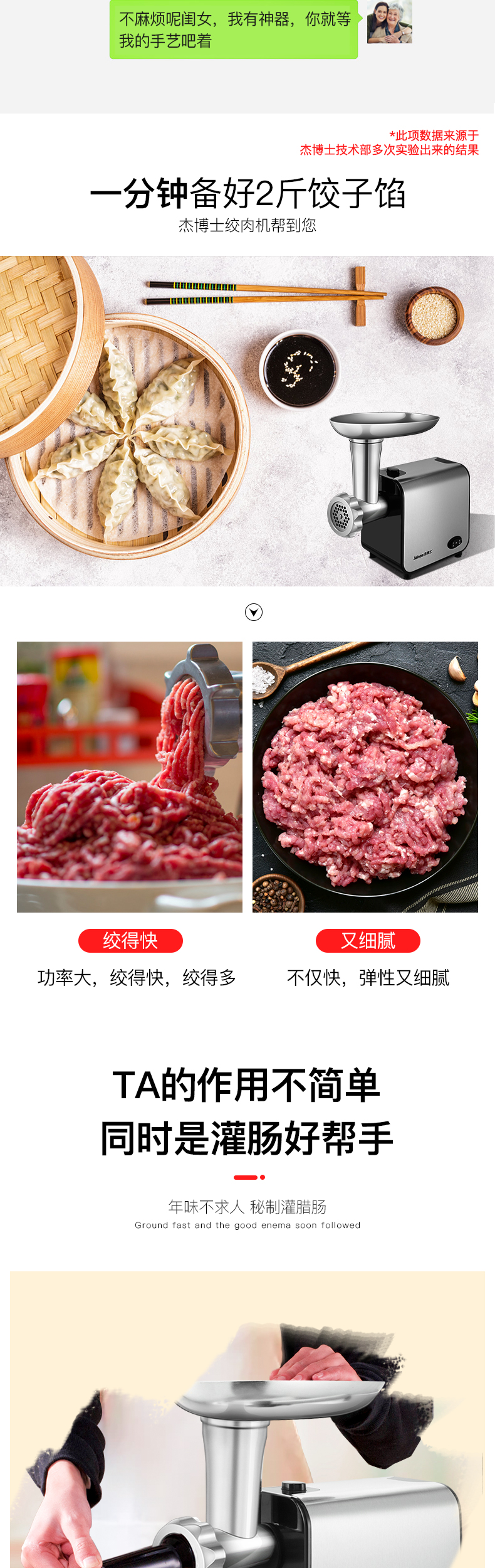 1、绞肉功能(猪肉、鱼肉、牛肉、羊肉等等),绞肉效果是肉馅、肉泥、肉末的;