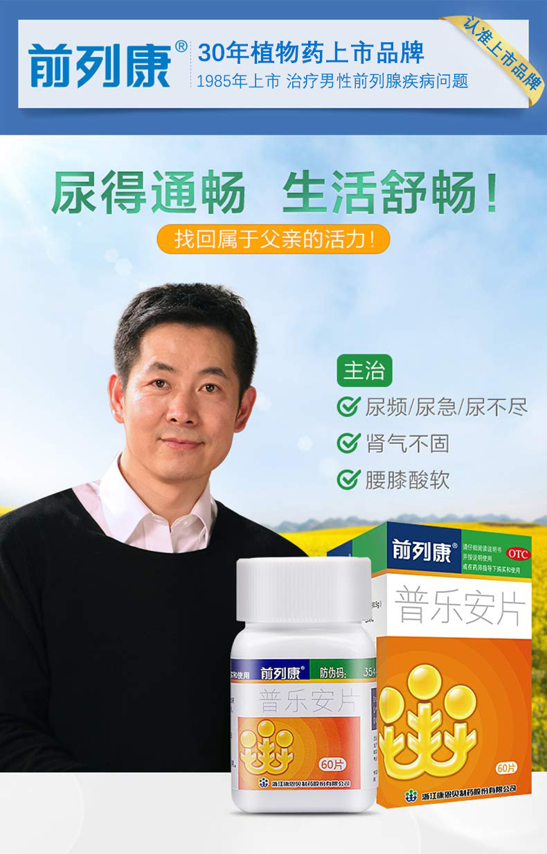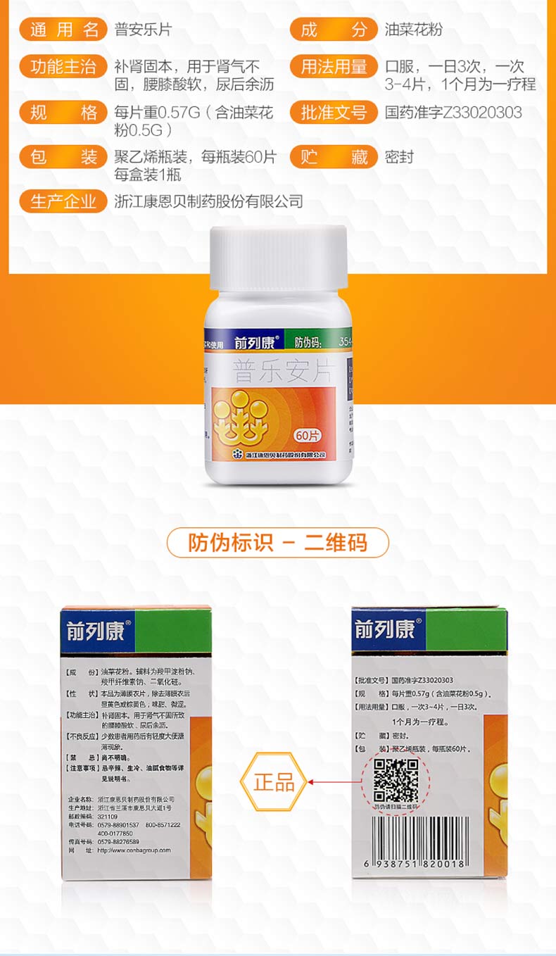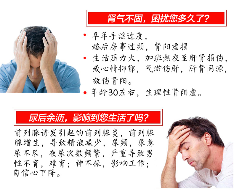 主治由手淫过度、房事频繁造成的肾气不固、腰膝酸软、尿频尿急、尿后余沥等前列腺问题,是植物药剂,不是化学药剂,可放心使用。服用方法,一日3次,一次3-4片,6盒正好是一个疗程的药量。