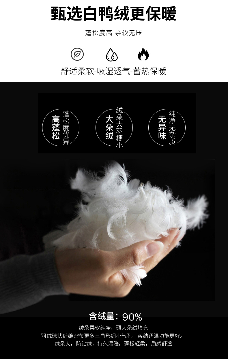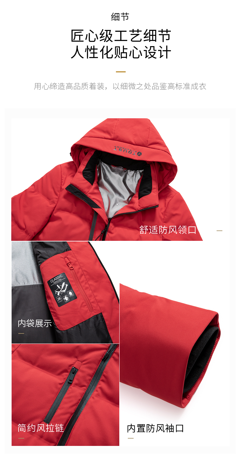 这款雅鹿羽绒服,外层采用优质新型防水面料,内里高品质90%灰鸭绒,蓬松度高;并且采用科技蓄热内里,将身体湿气传华为热量,强力锁温,加厚保暖防寒。多层防钻绒技术,不跑毛不钻绒。细节上防水拉链,封闭式保护,不漏风不进水。简约时尚款式,时尚百搭。