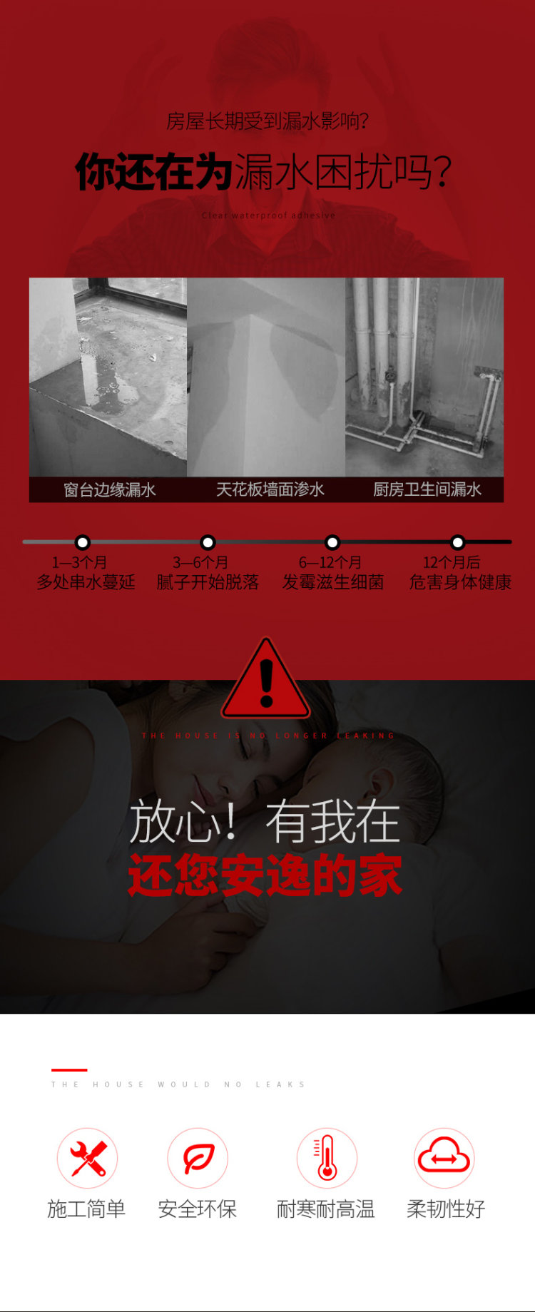送全套工具,古秋透明防水胶,卫生间,窗台,外墙等补漏均可用,耐磨耐踩,安全环保,浓度升级,抗冻耐热,柔韧性好。密封性好,滴水不漏领券链接点此