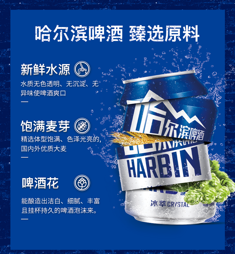 这款哈尔滨 冰萃小嗨啤,选用新鲜水源、饱满麦芽、优质啤酒花酿成,口感清淡爽口,泡沫细腻,冰镇后更好喝。