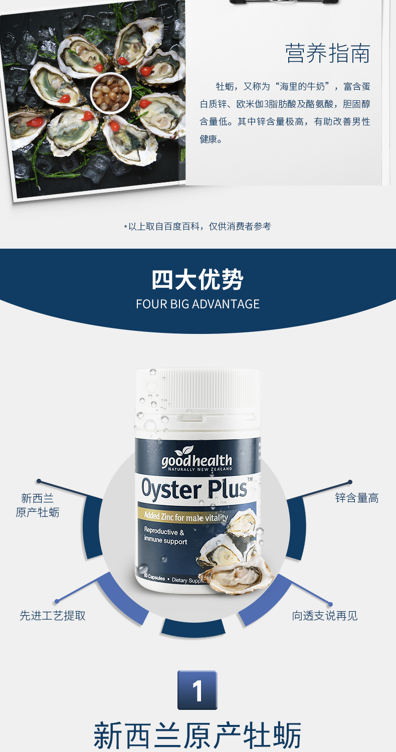 新西兰原装进口,海中牛奶,提精提神60粒。选用新西兰海域中的牡蛎制成,天然纯净,含有18种以上氨基酸,同事含有丰富的铁和铜,可促进新陈代谢,改善身体状态,温补身体,有效抗疲劳。