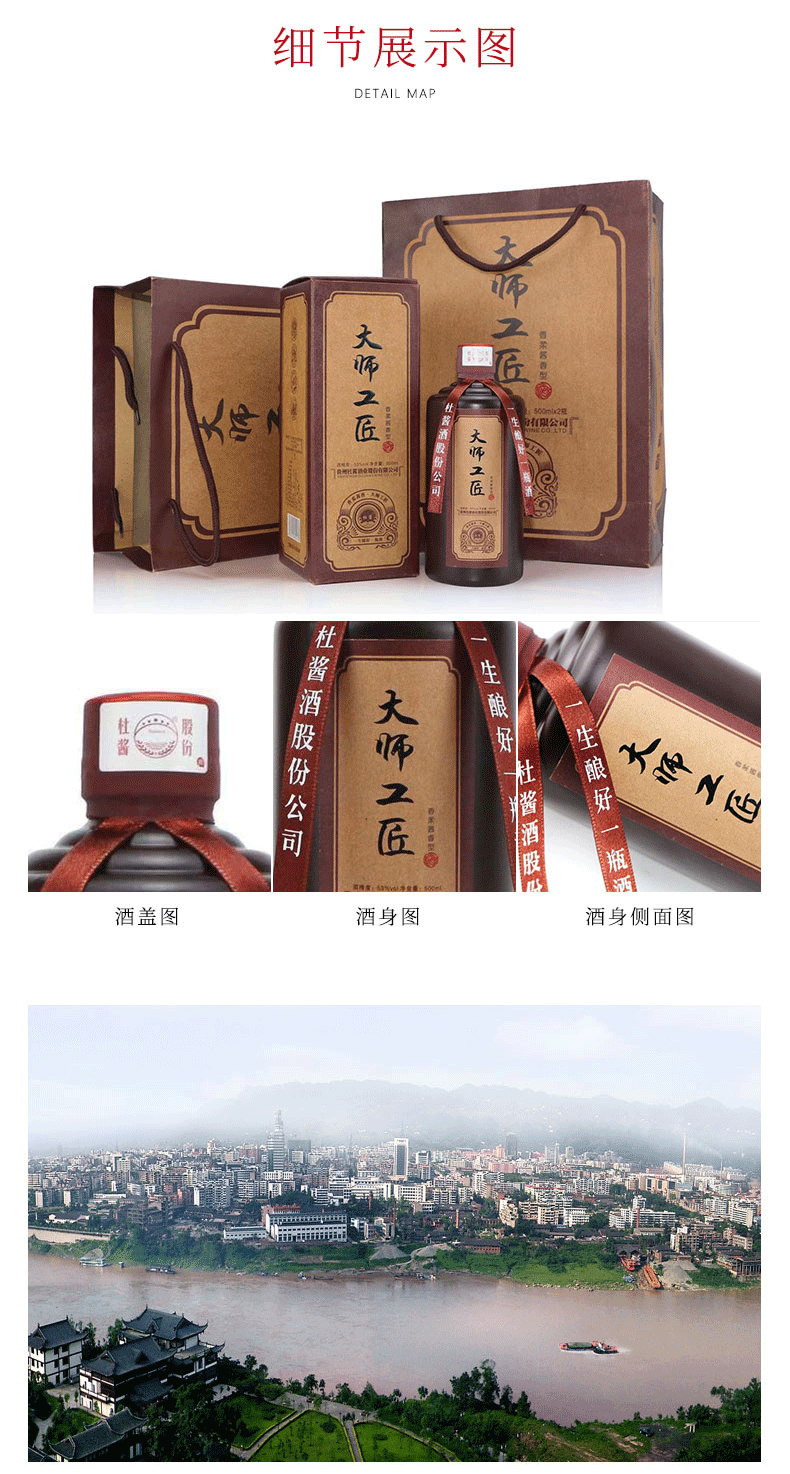 贵州杜酱 工匠大师,秉承传统工艺,依托现代化酿造科技,选取本地优质有机糯高粱和小麦,经严格的酿造程序,“端午踩曲、重阳投粮、九次蒸馏、八次发酵、七次取酒”的生产工艺流程酿制,香柔酱香,好喝不上头。规格:500ml*6瓶。