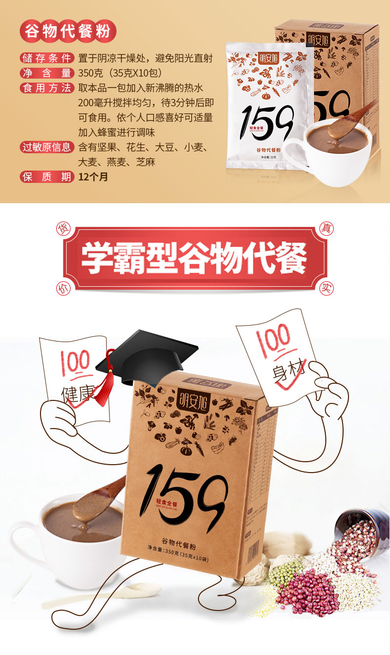 天猫明安旭旗舰店69.8元,可领50元优惠券,实付19.8元到手,吴昕代言,精选25种食材,专为营养代餐研制,饱腹低摄入,好吃不腻,3分钟解决早餐,口感软糯,高饱腹,健康甩肉,让你时刻保持性感迷人好身材。