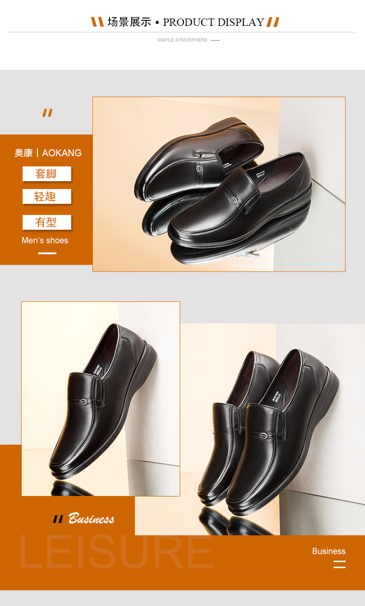 这款 奥康 商务休闲皮鞋,采用头层牛皮材质鞋面,质感柔软,吸汗透气,内里为猪皮搭配弹力布、超纤,增加上脚舒适度,轻质塑胶材质鞋底,饰以阶梯式防滑底纹,耐穿耐磨。一脚蹬设计,穿脱方便,简约造型,适合各个场合。
