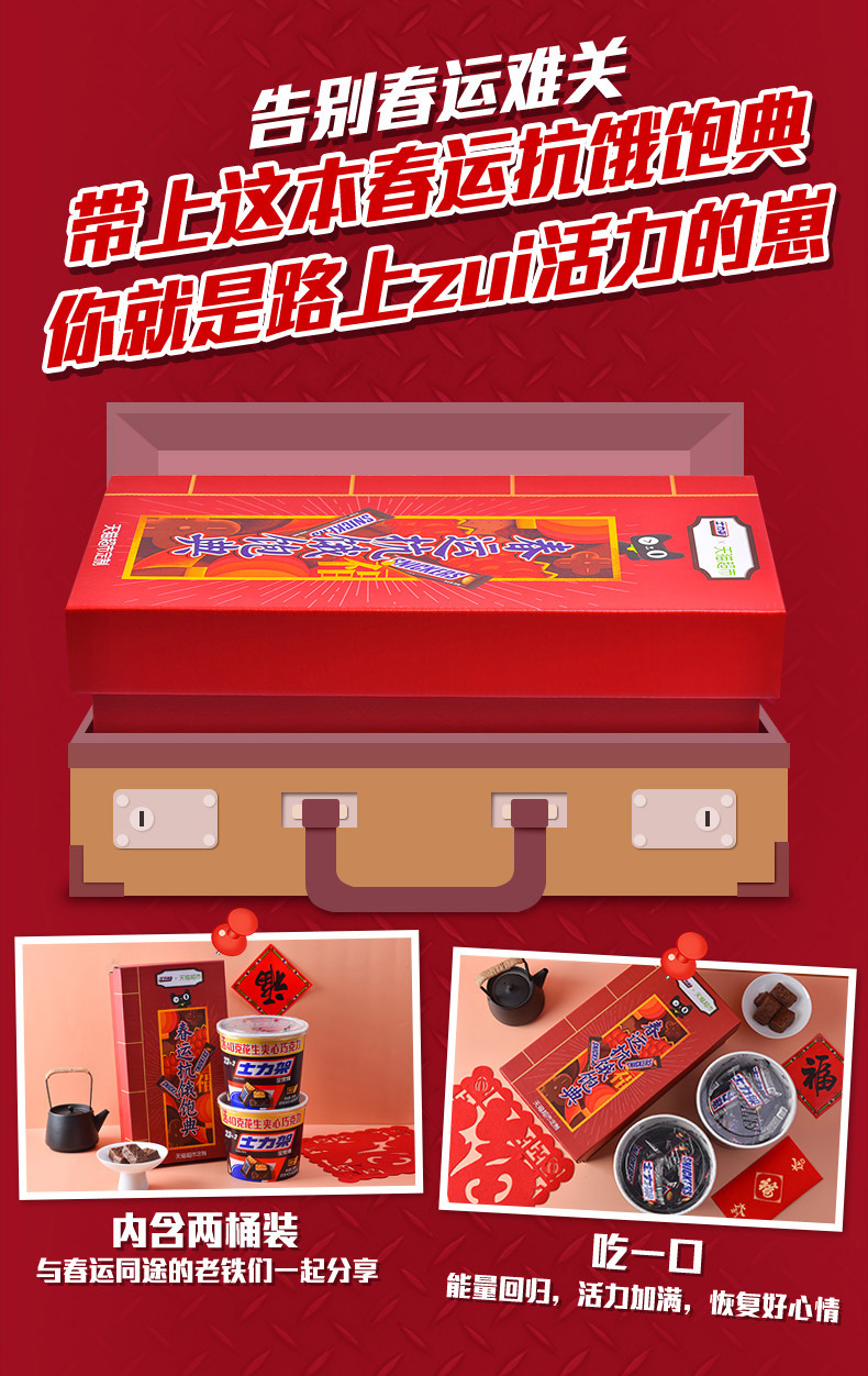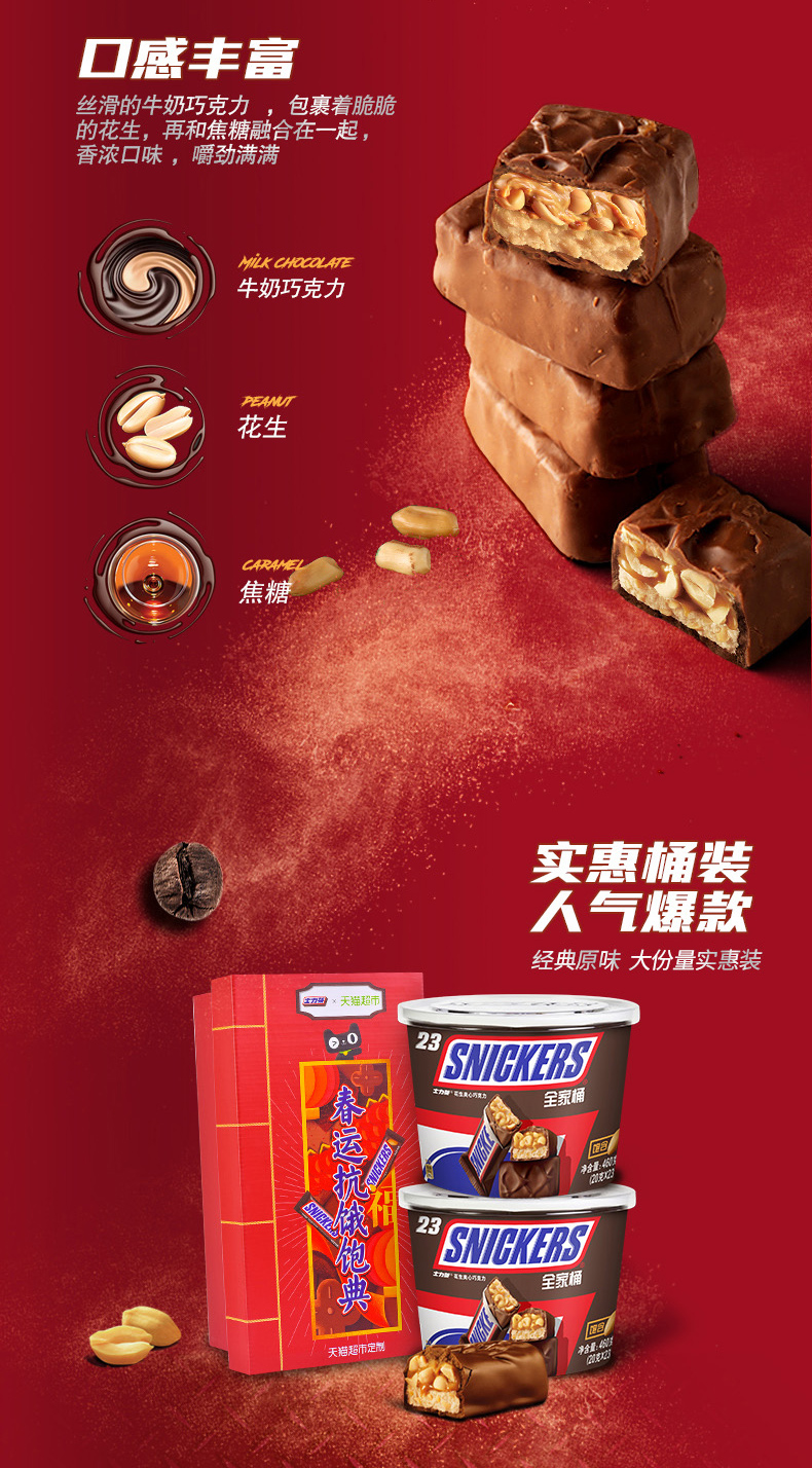 线下超市一盒士力架38.8元才340g, 这款980g大礼包很具性价比,天猫超市发货,品质有保障。花生牛奶巧克力,抗饿顶饱,精美礼盒装。规格:460g*2桶。