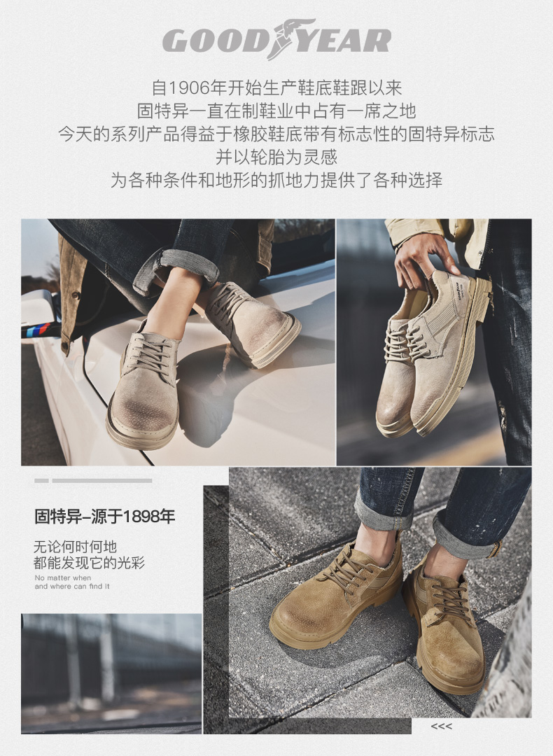 1905年固特异开始做鞋,因为鞋底做的和轮胎一样好,防滑、耐磨、安全耐久,广受好评。2016年9月GOOD YEAR品牌中国大陆地区总经销授权厦门一家公司进行经营,2017年6月10日,固特异中国第一家鞋品店于北京王府井正式开业,现在专卖店超过1000家。