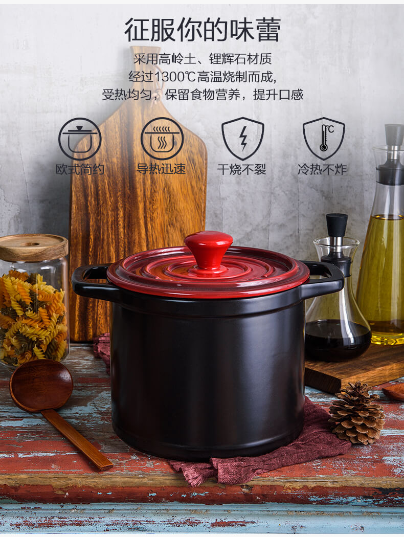 这款雅诚德 耐高温陶瓷炖锅,采用高岭土、锂辉石材质,经过1300℃高温烧制而成,通过食品接触安全认证,安全无毒,受热均匀,从而保留食物营养,导热迅速、明火干烧不裂、冷热不炸。适合电炉、燃气灶、电陶炉、卤素炉烹饪。