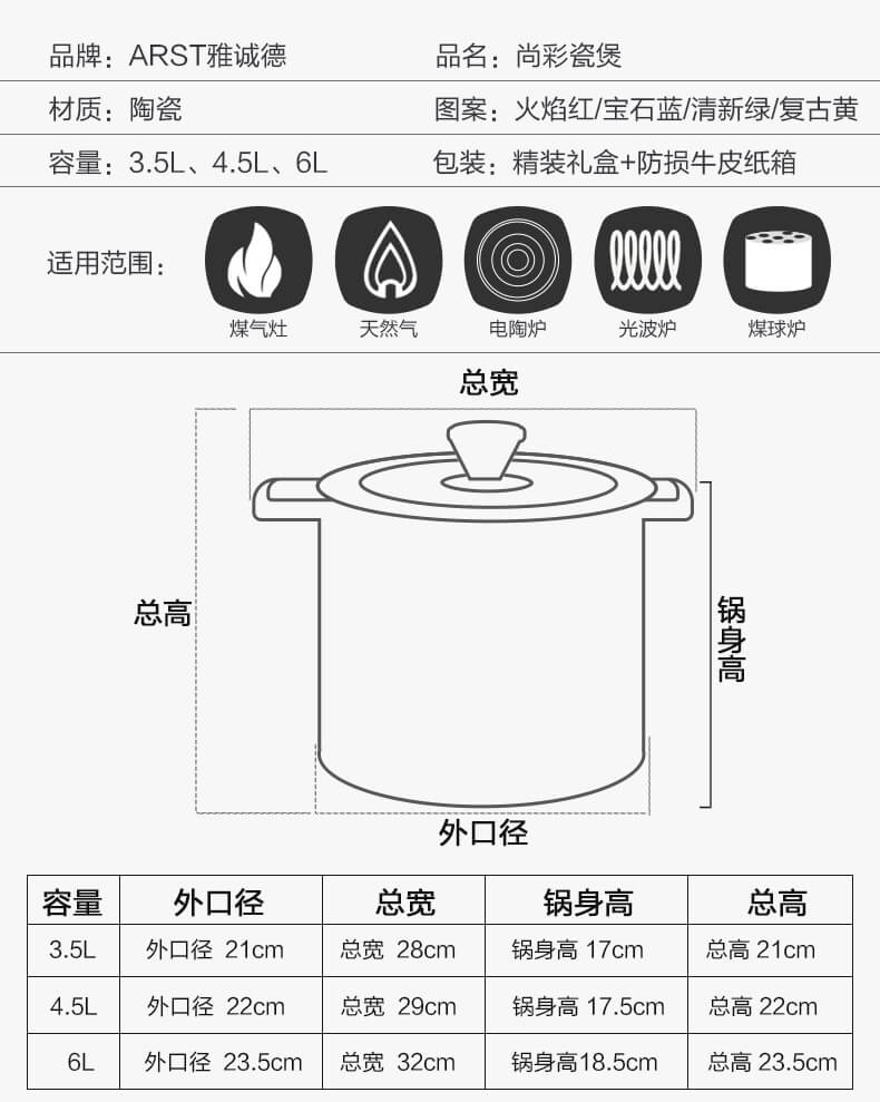 天猫5年老店「雅诚德广州专卖店」,前三款(3.5L)269元、后两款(4.5L)299元,可领100元优惠券,3.5L实付169元到手,直身陶瓷煲,颜值超高。3年质保,烧裂免费补发锅身。