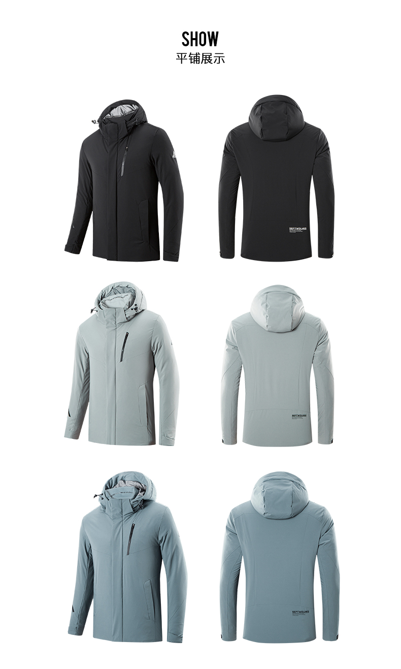 在款式和细节上,3D立体剪裁+合身版型,上身更得体不臃肿。半高领搭配防风帽设计,有调节抽绳,可以把脖子整个围住,帽子不需要时可以拆卸下来,不妨碍。
