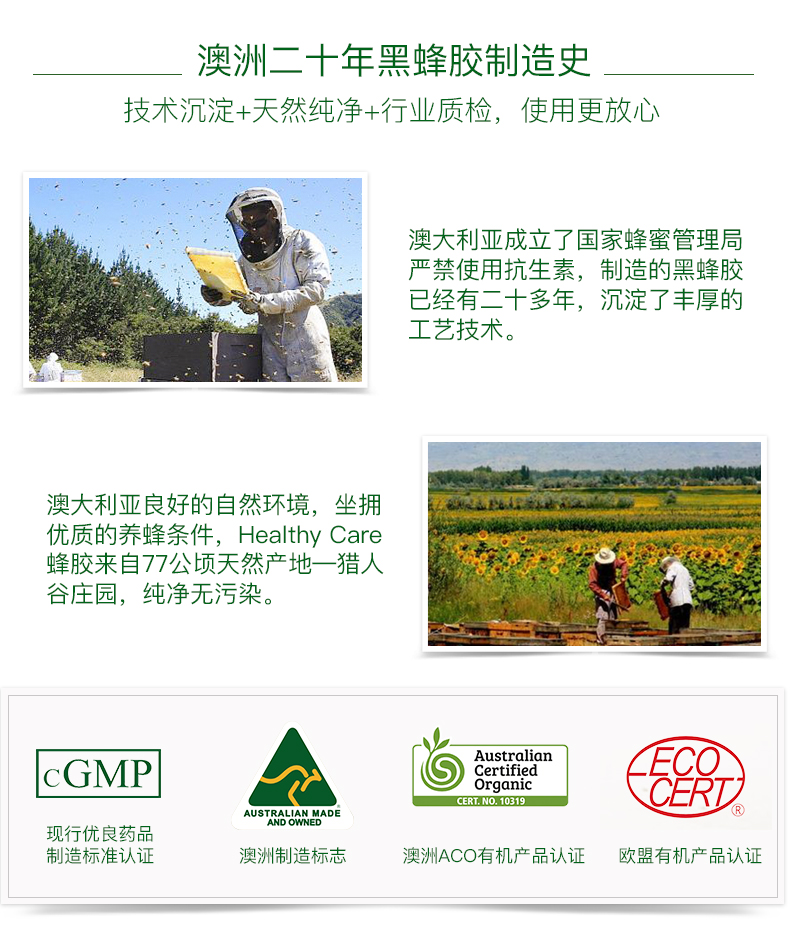 Healthy Care原料采用有机、纯天然植物与无污染的海洋生物,在无菌、真空下制造生产。所有生产程序及管理符合GMP的严格控管标准,且所有产品遵照澳洲国家药物管理局(TGA)的法规和要求并符合实际品牌规格。