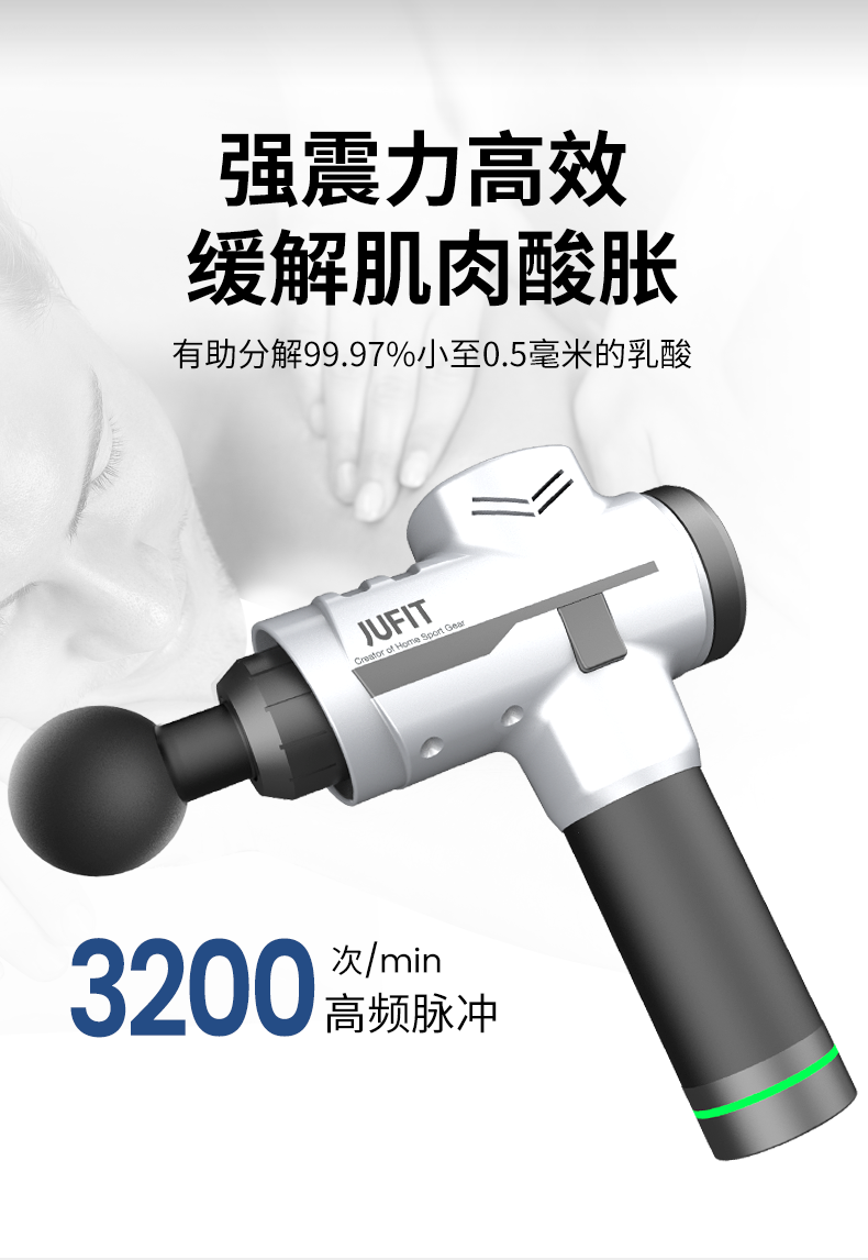 美国居康筋膜按摩枪,严格遵循身体怀肌肉、骨骼受力理论,通过高频振动,以达到缓解长期久坐、剧烈运动所导致的身体酸痛、缓解肌肉紧绷的功效,3档档变频震动模式,使用多种需求,无论是日常舒缓放松,或者需要深度按摩的专业人士,都能使用。