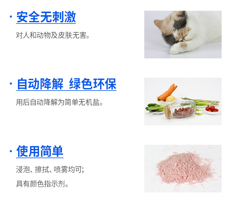 这款杜邦卫可 宠物杀菌消毒剂,可以用来给宠物物品和环境杀菌消毒,用后自动降解为简单的无机盐,对人和动物及皮肤无害。