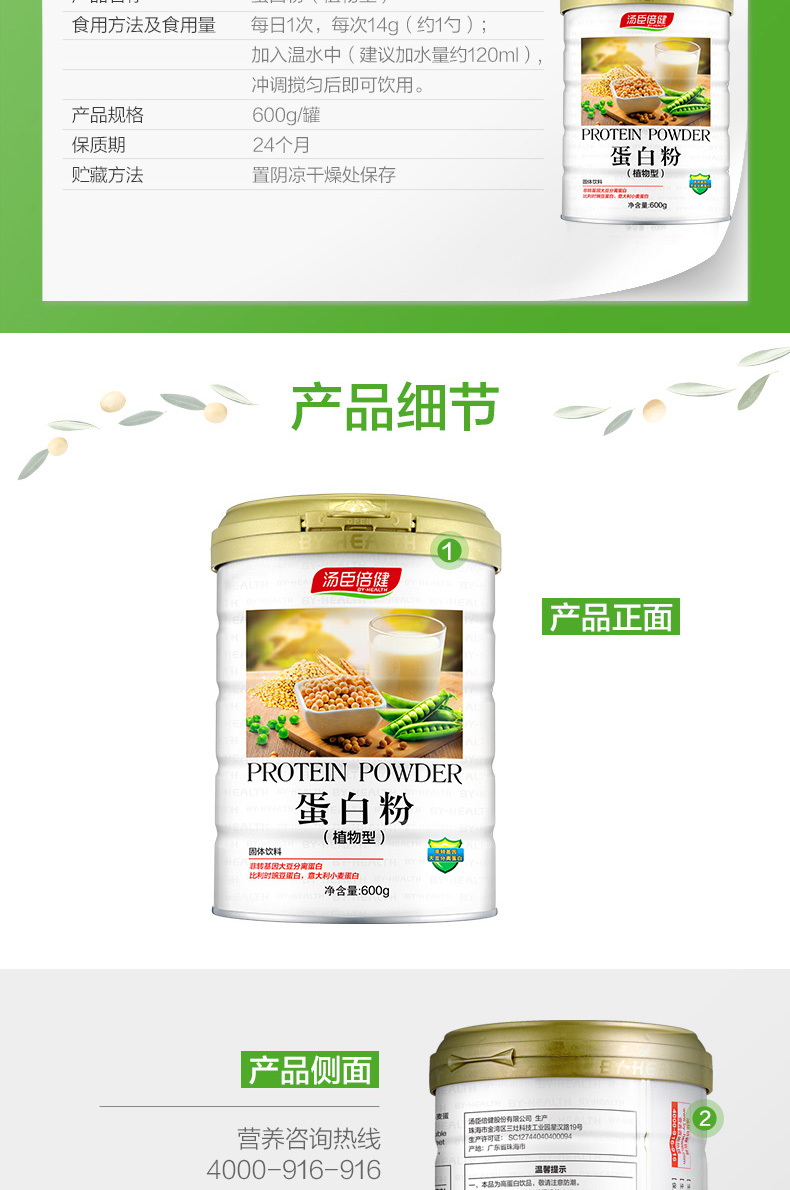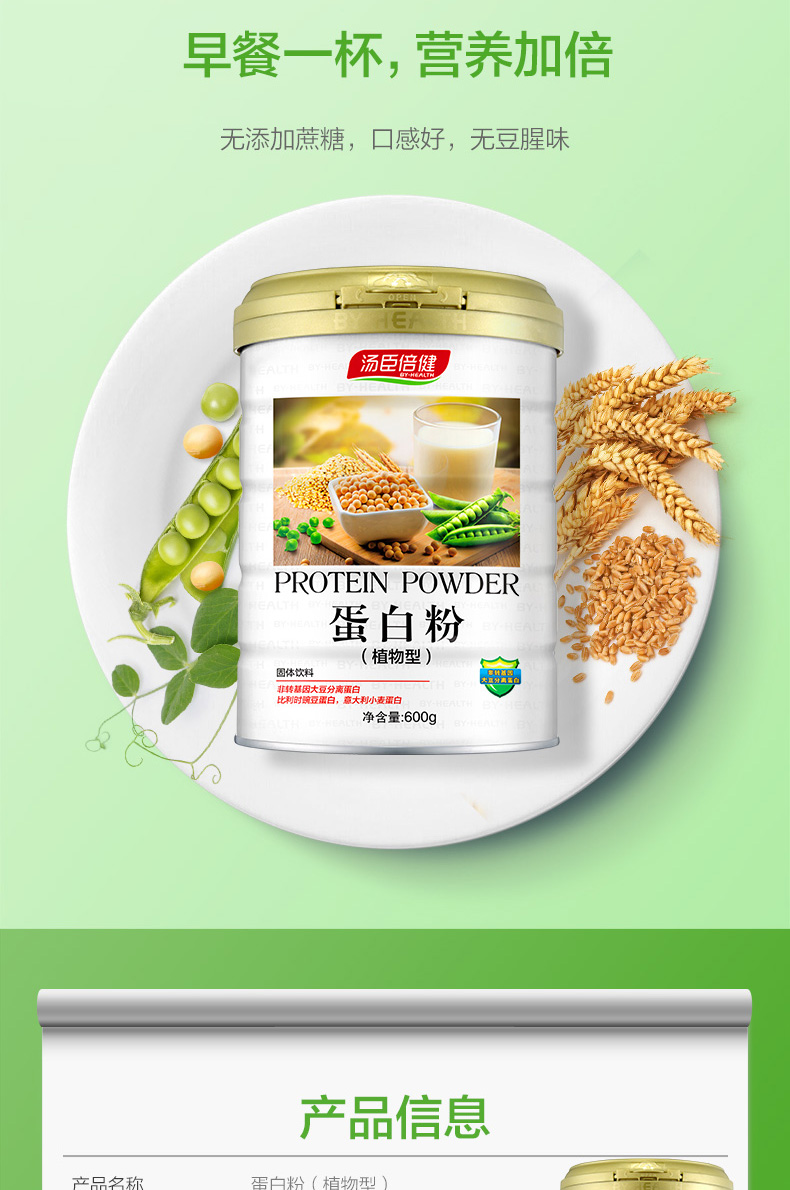 汤臣倍健植物高蛋白质粉,植物高蛋白粉,严选比利时豌豆蛋白+意大利小麦蛋白,每份14g含有8.4g优质植物蛋白,不添加蔗糖,不含胆固醇,口感好无豆腥味,可为老人、病人、产妇、体虚、熬夜人群增加免疫力。礼袋装,无论自用还是送礼都很不错。规格:900g。