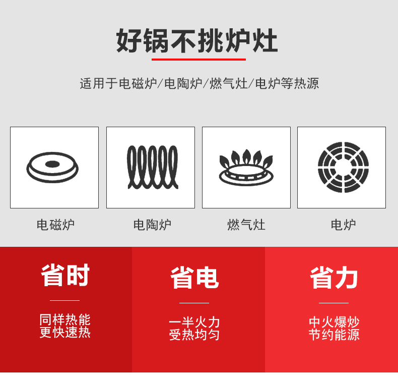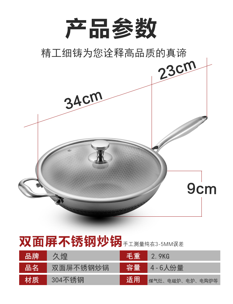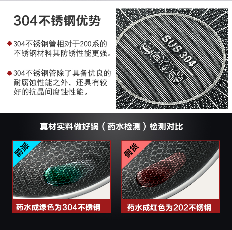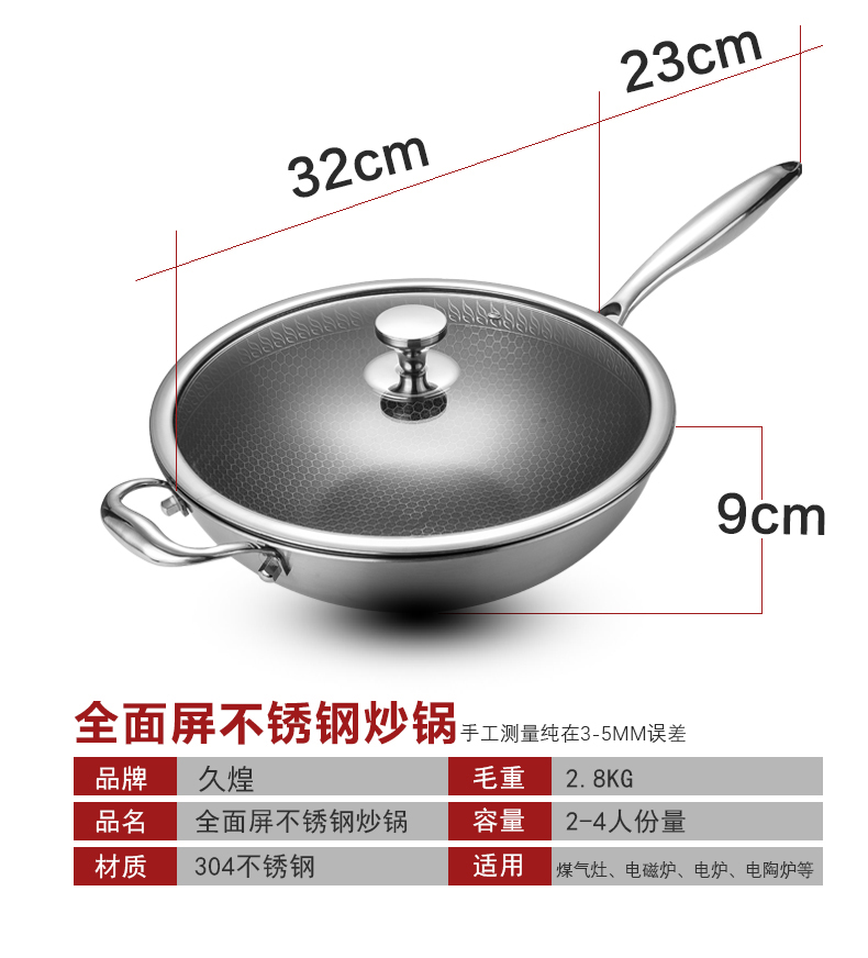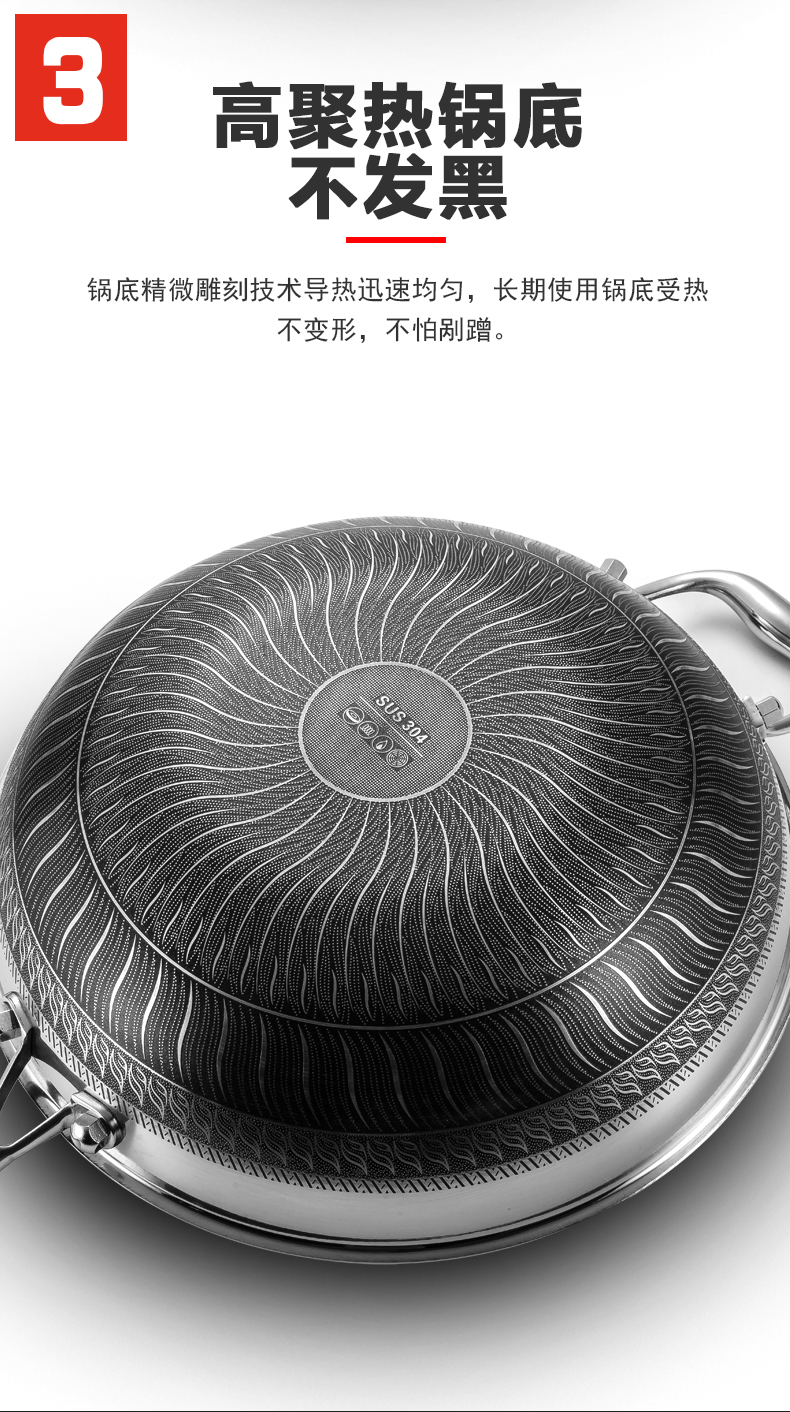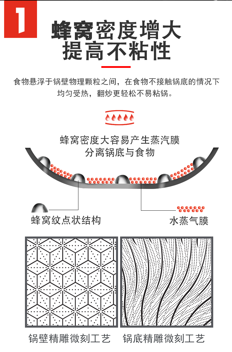 这款杭泰不粘炒锅,采用德国工艺制成,锅体为食用级304不锈钢复合材质,锅内为蜂窝纹理设计,物理不粘,无涂层不怕剐蹭,且少油烟。7层钢一体压铸锅体,受热均匀而迅速,不挑炉灶,电磁炉、燃气灶都能用。