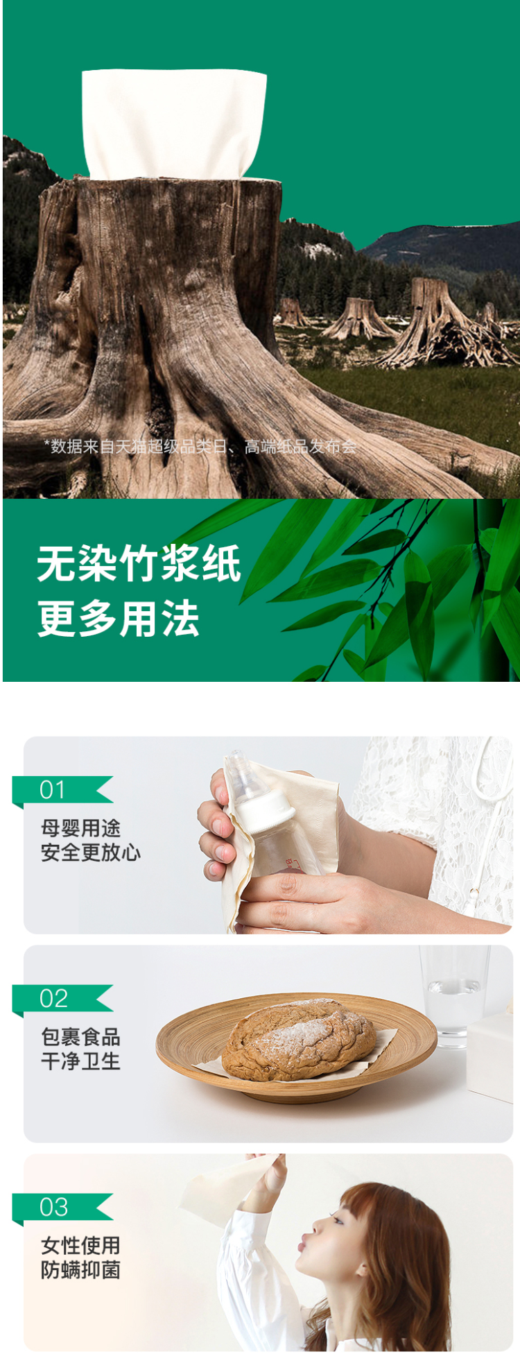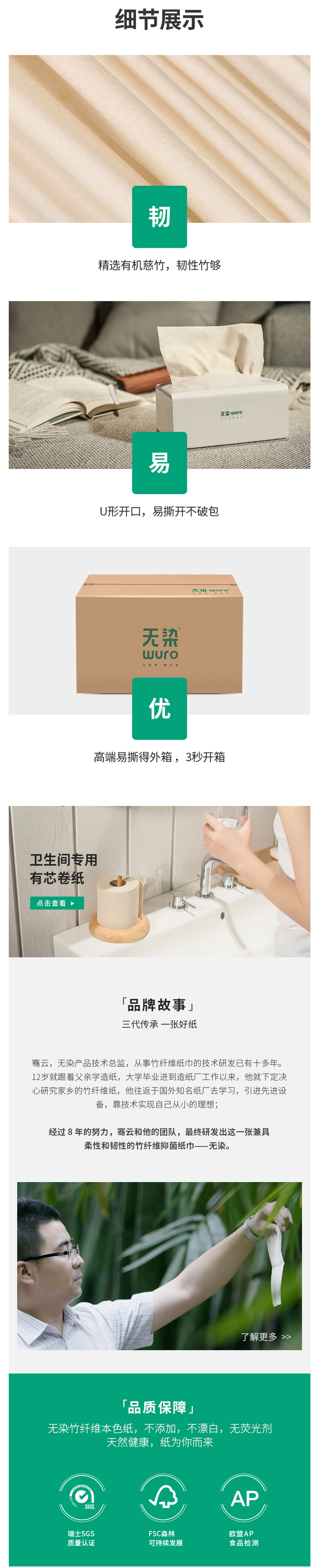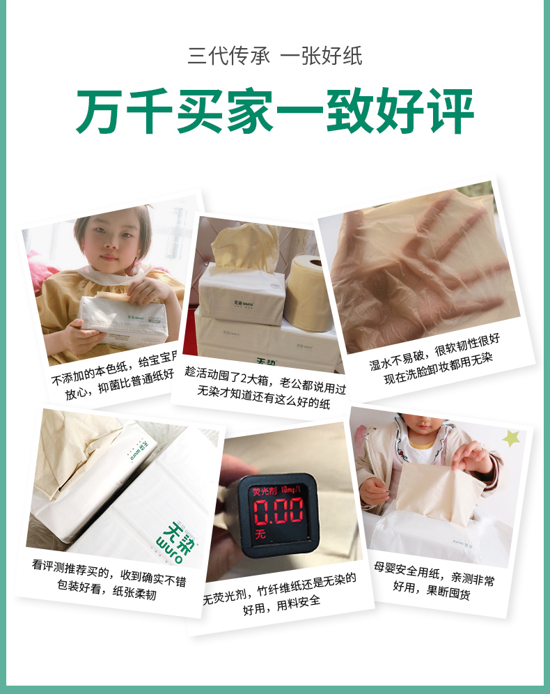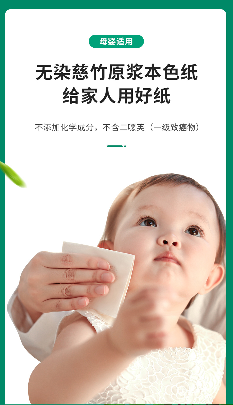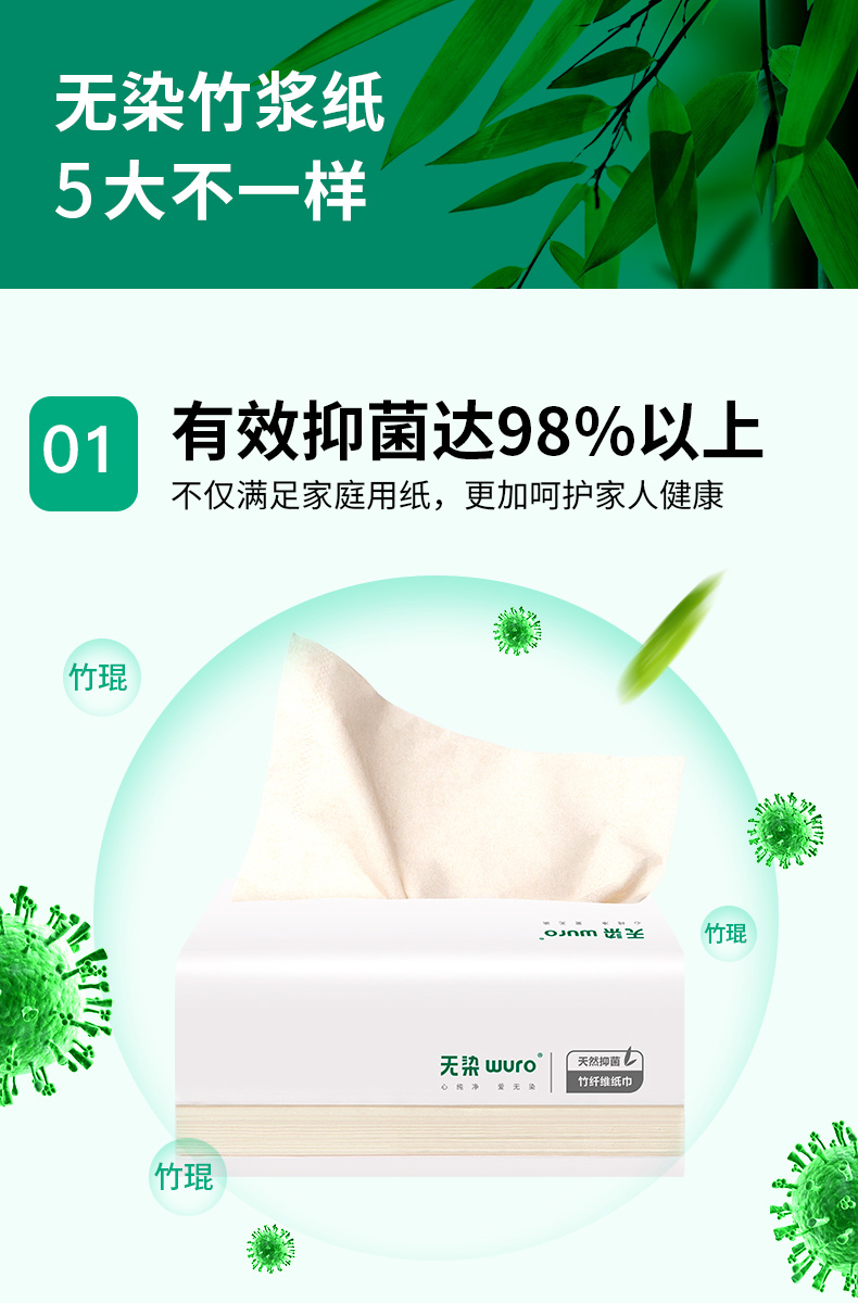 这款抽纸无漂白,无有害添加,抽纸可直接接触食品,内部添加天然提取的竹锟精华,抑菌率高达99%,具有多孔纤维,可以瞬间吸收和蒸发水分,湿水后韧性更强,擦拭后不易松散,干湿两用,大小适中。