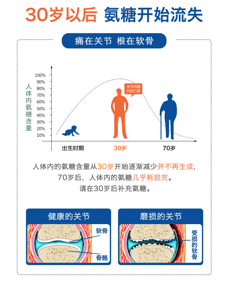 对于长期伏案工作的人群、以及老人长辈都比较容易产生的关节问题,氨糖软骨素是目前比较认可的关节舒适剂,其中含有的多种有效成分能帮助预防和治疗骨骼疾病。这款规格是120粒/瓶,每日2粒,随餐服用即可。