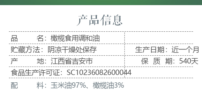 这款探花村 山茶橄榄油,是一款食用调和油,由97%玉米油+3%橄榄油调和而成,口感更好,天然健康。