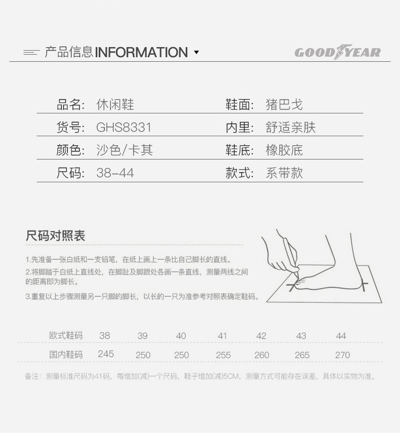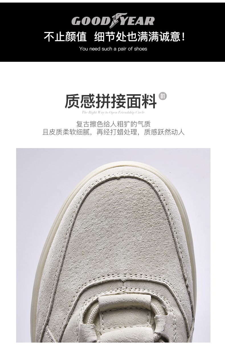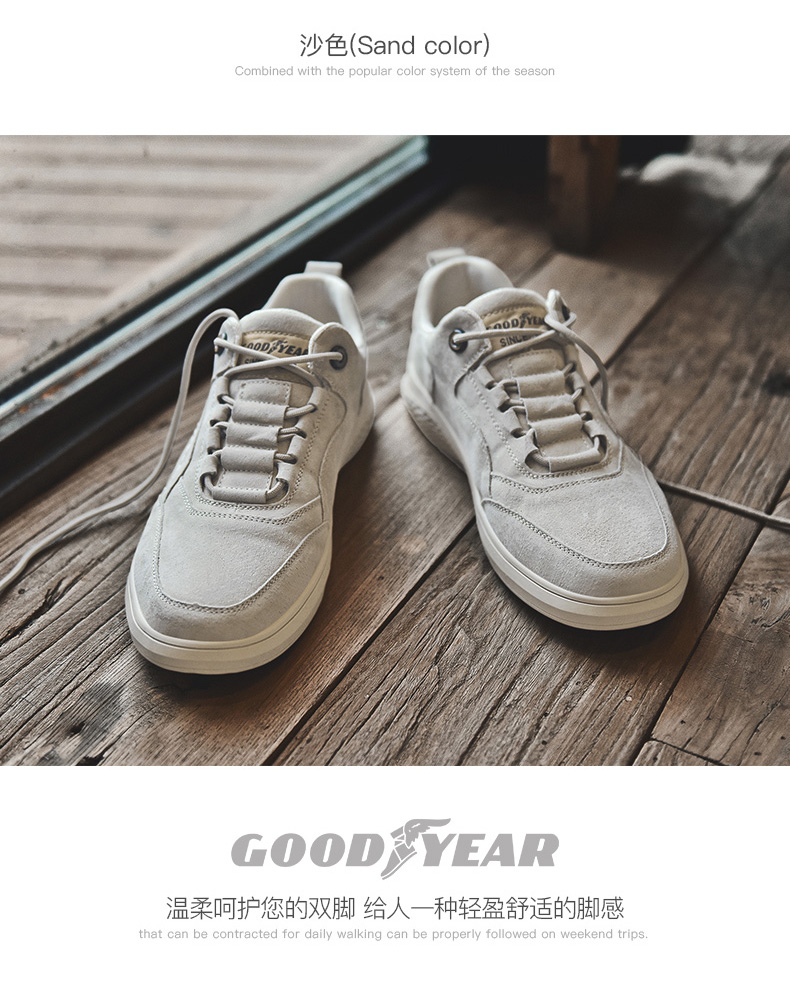 这款休闲鞋鞋底采用固特异轮胎橡胶配方打造,拥有良好的柔韧性,而且还拥有杰出的抓地力、轻便、耐磨又耐用。鞋面使用猪巴戈材质,柔软舒适,亲肤透气性好,鞋身延边缝制,外观丰满悦目,整体具有设计和装饰感。