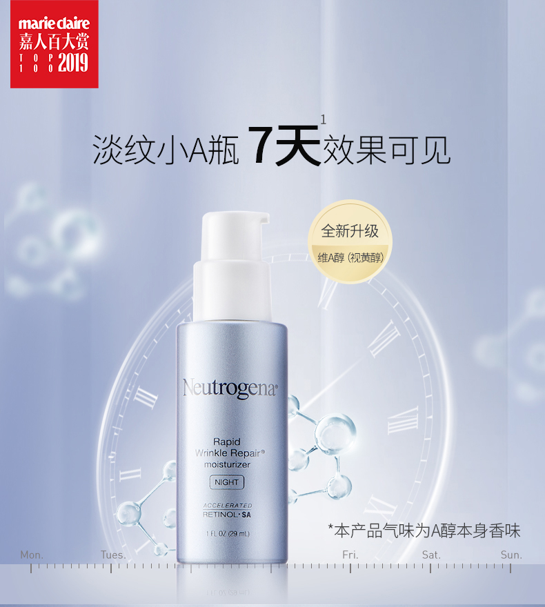 =189.9元 到手价,露得清是美国皮肤科医生首推的第一护肤品牌。露得清的维a醇系列,制造全部在加州和法国工厂,全程不见光不接触空气,最大限度的保存了a醇的活性。强生11年专门研究创新SA升级配方,克服了稳定性、温和度以及功效性三者难共赢的问题。帮助修护肌肤屏障,肌底注入年轻力,年轻紧致,光泽透亮。